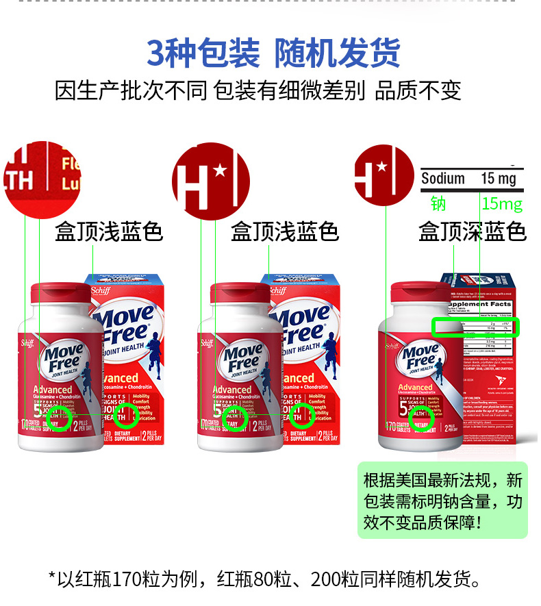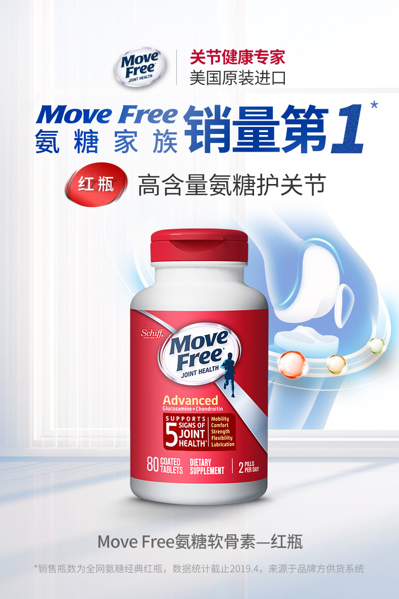 【保税直邮】Move Free维骨力氨糖软骨素片 红瓶80粒