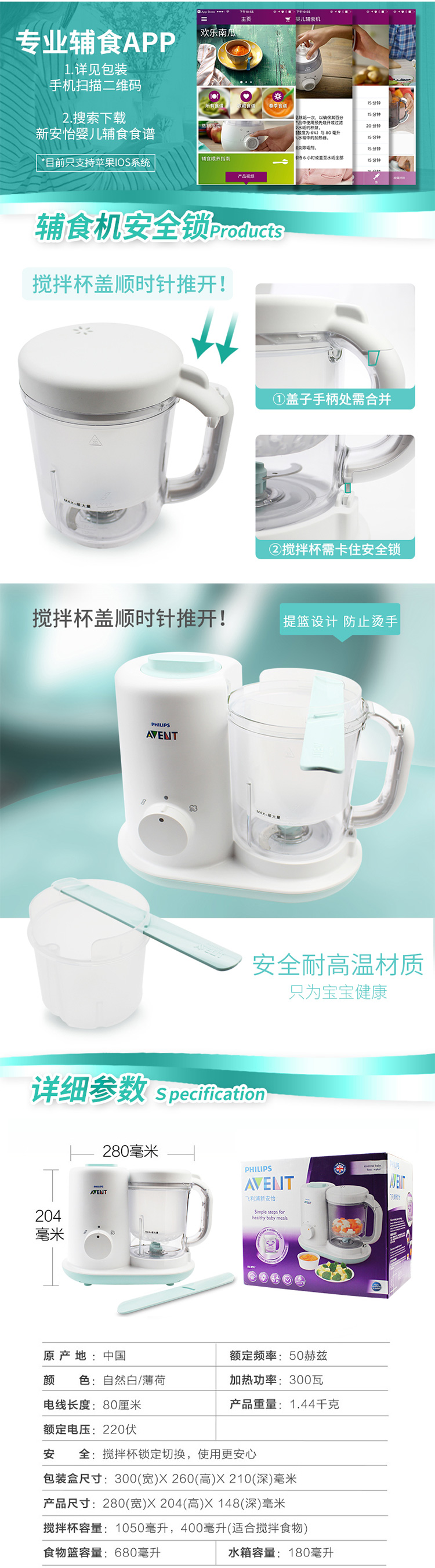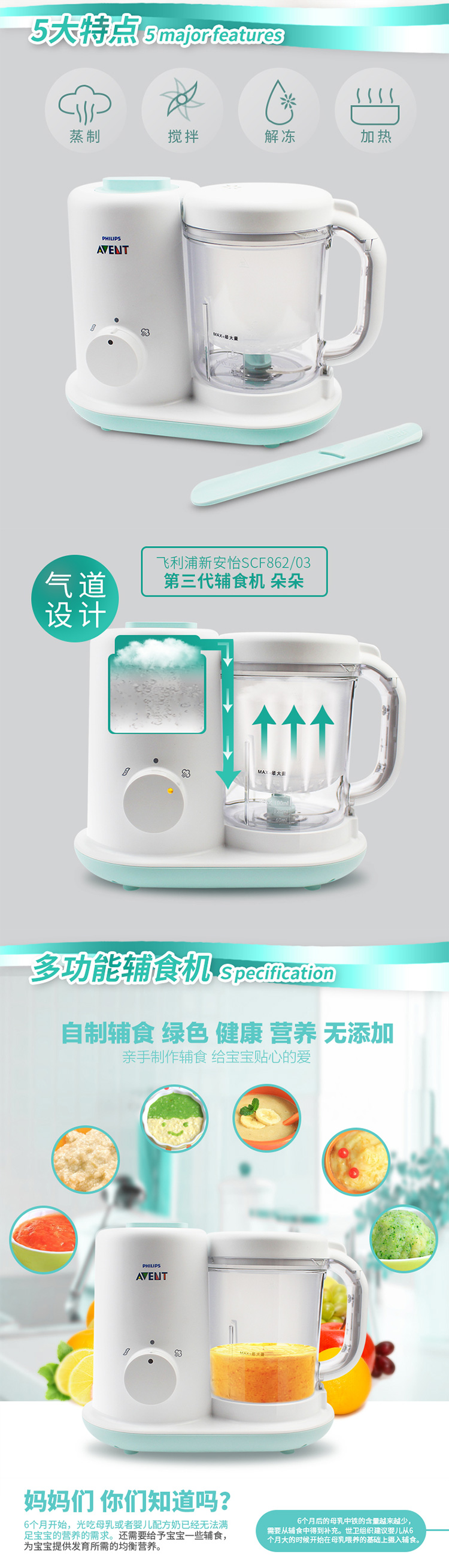 飞利浦新安怡健康蒸制搅拌辅食机SCF862/03