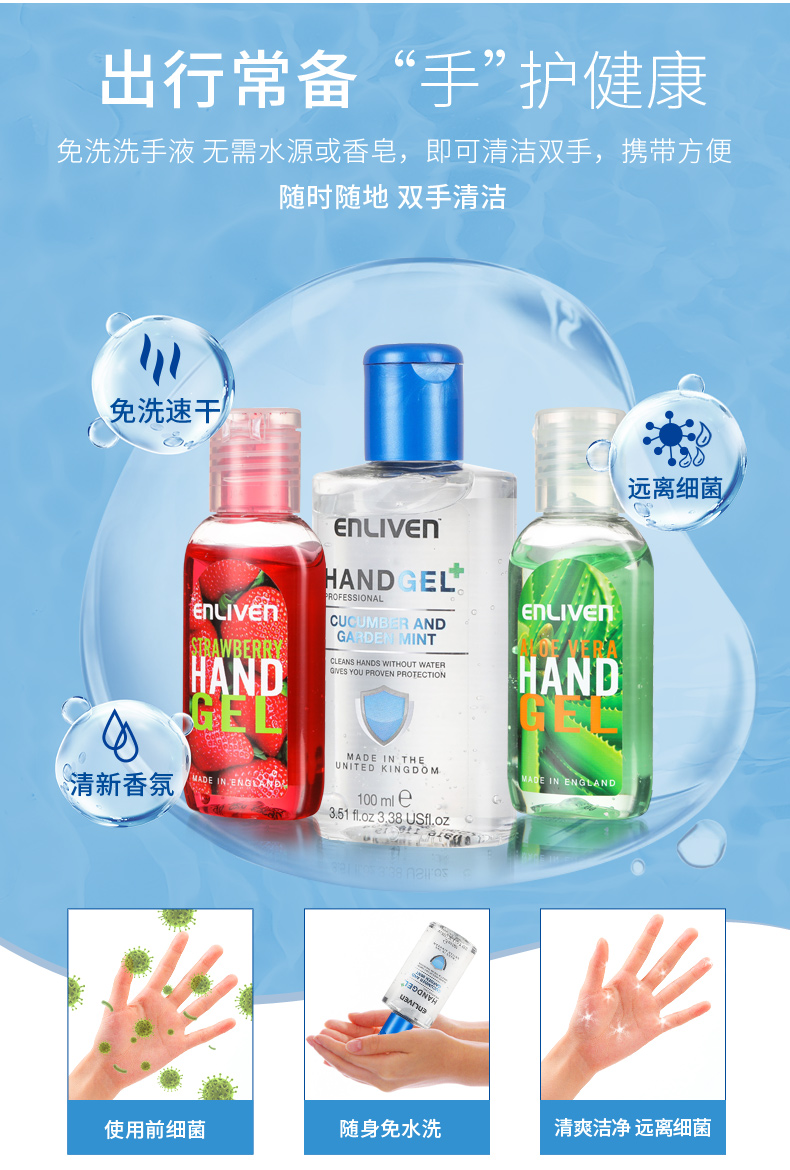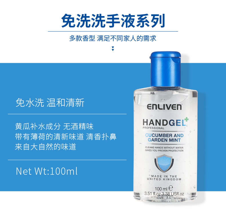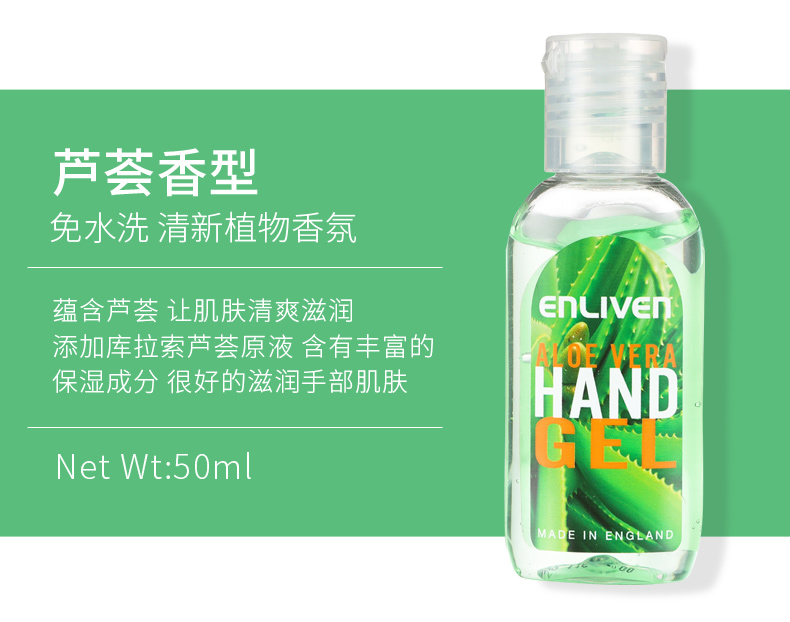 英国enliven英莱芬抗菌免水洗手液芦荟味50ml