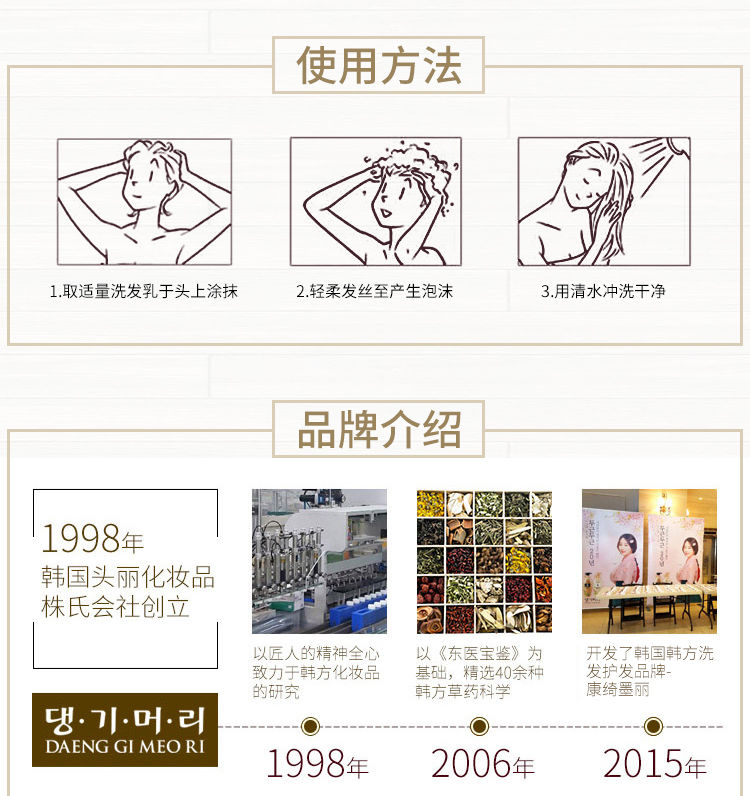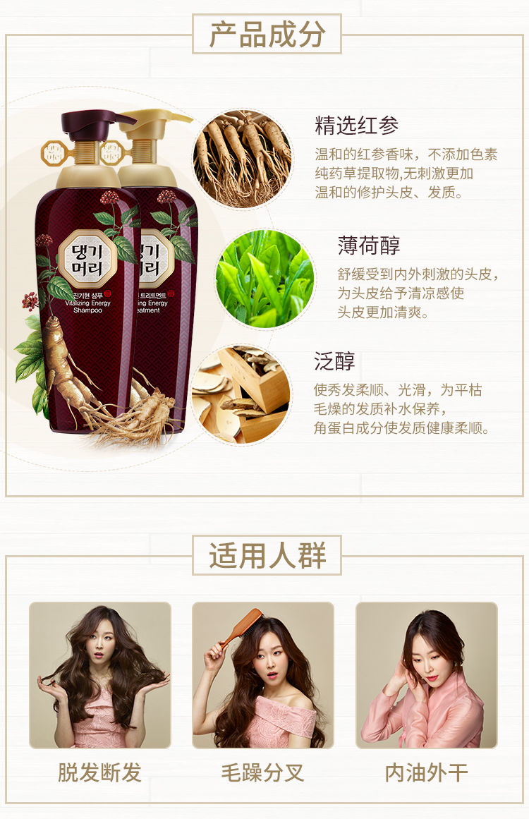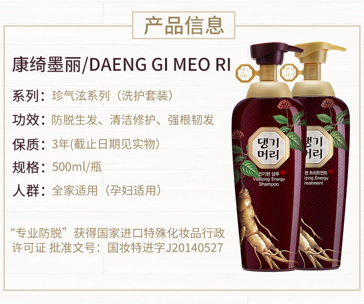 韩国康绮墨丽DAENG GI MEO RI珍气泫洗发乳500ml(赠送护发素中样50ml)