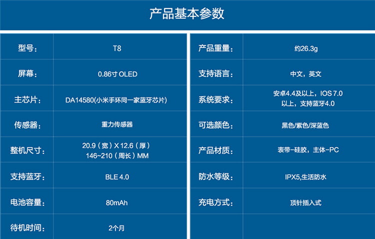 【授权商品】恩谷ENGUE 心率智能手环 EG-T8 深蓝色