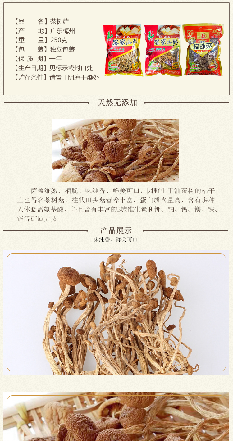 银新客家梅州特产茶树菇250克/包