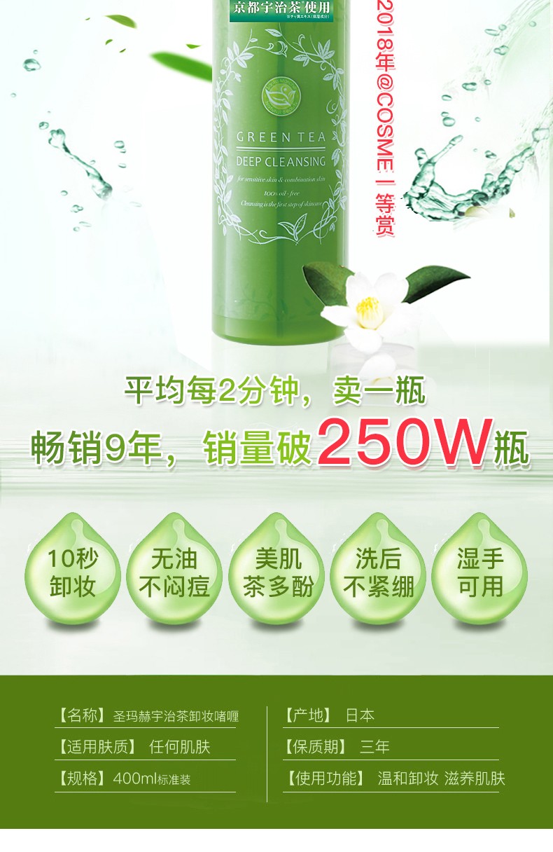 圣马赫日本宇治茶卸妆啫喱400ml