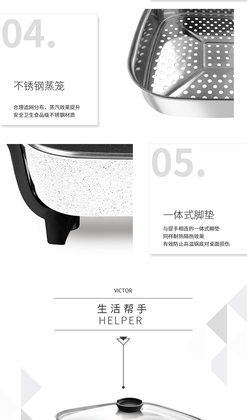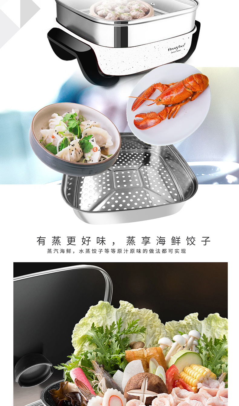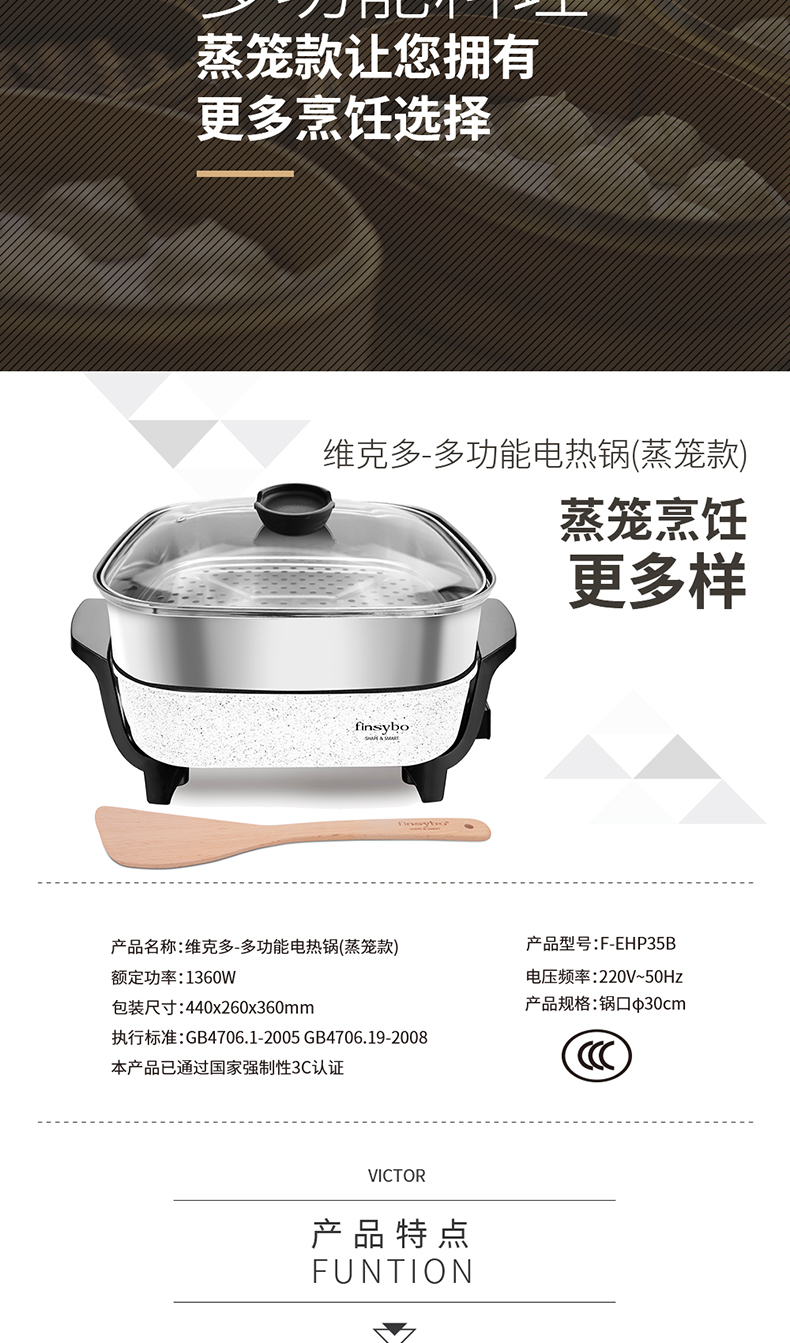 【授权商品】英国finsybo维克多多功能电热锅(蒸笼款) F-EHP35B 4L 1360W【下单即送麦秸秆碟13.7*13*10cm*4个】