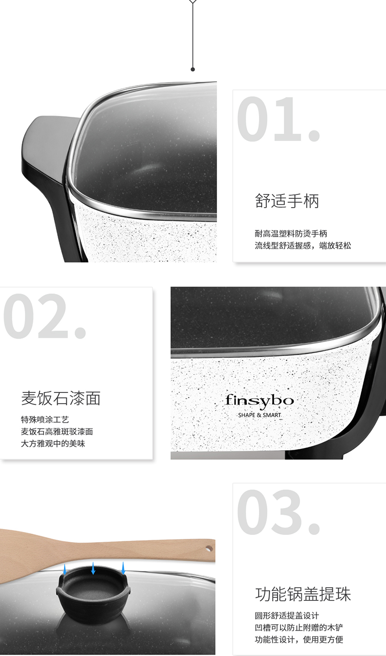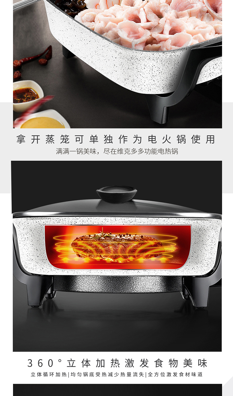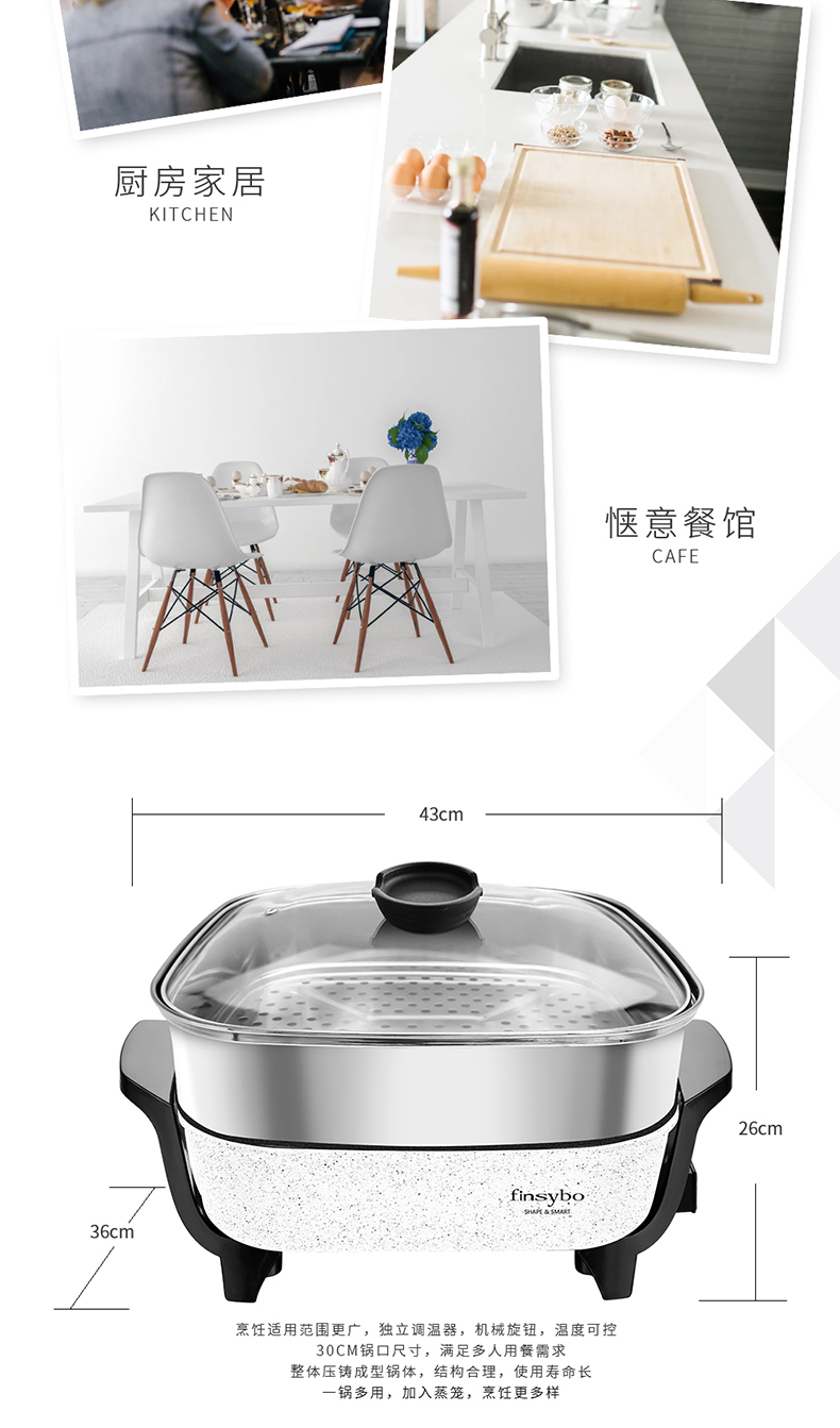 【授权商品】英国finsybo维克多多功能电热锅(蒸笼款) F-EHP35B 4L 1360W【下单即送麦秸秆碟13.7*13*10cm*4个】