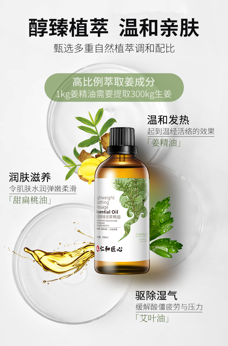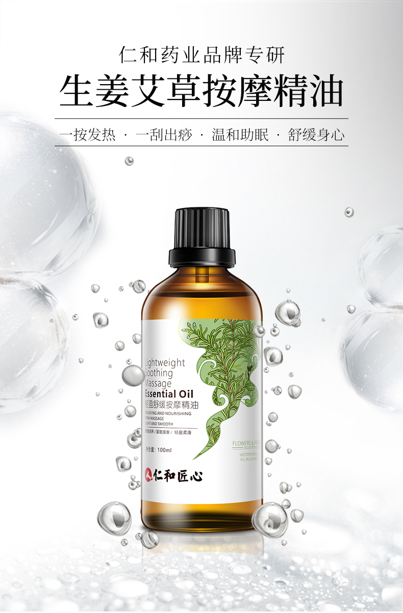 仁和匠心生姜艾草全身按摩精油100ml 面部美容通经络开背推背肩颈刮痧油