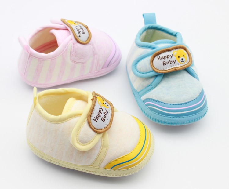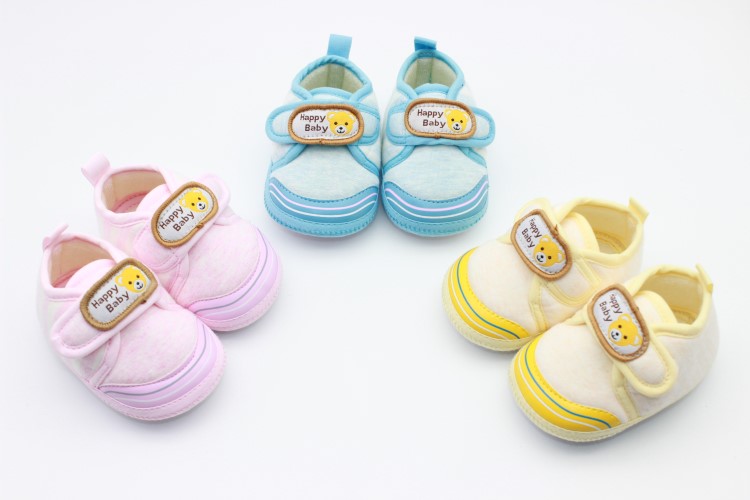 豆豆芽婴幼儿新品宝宝透气点胶底婴儿鞋手工步前鞋11-13码蓝黄粉混装