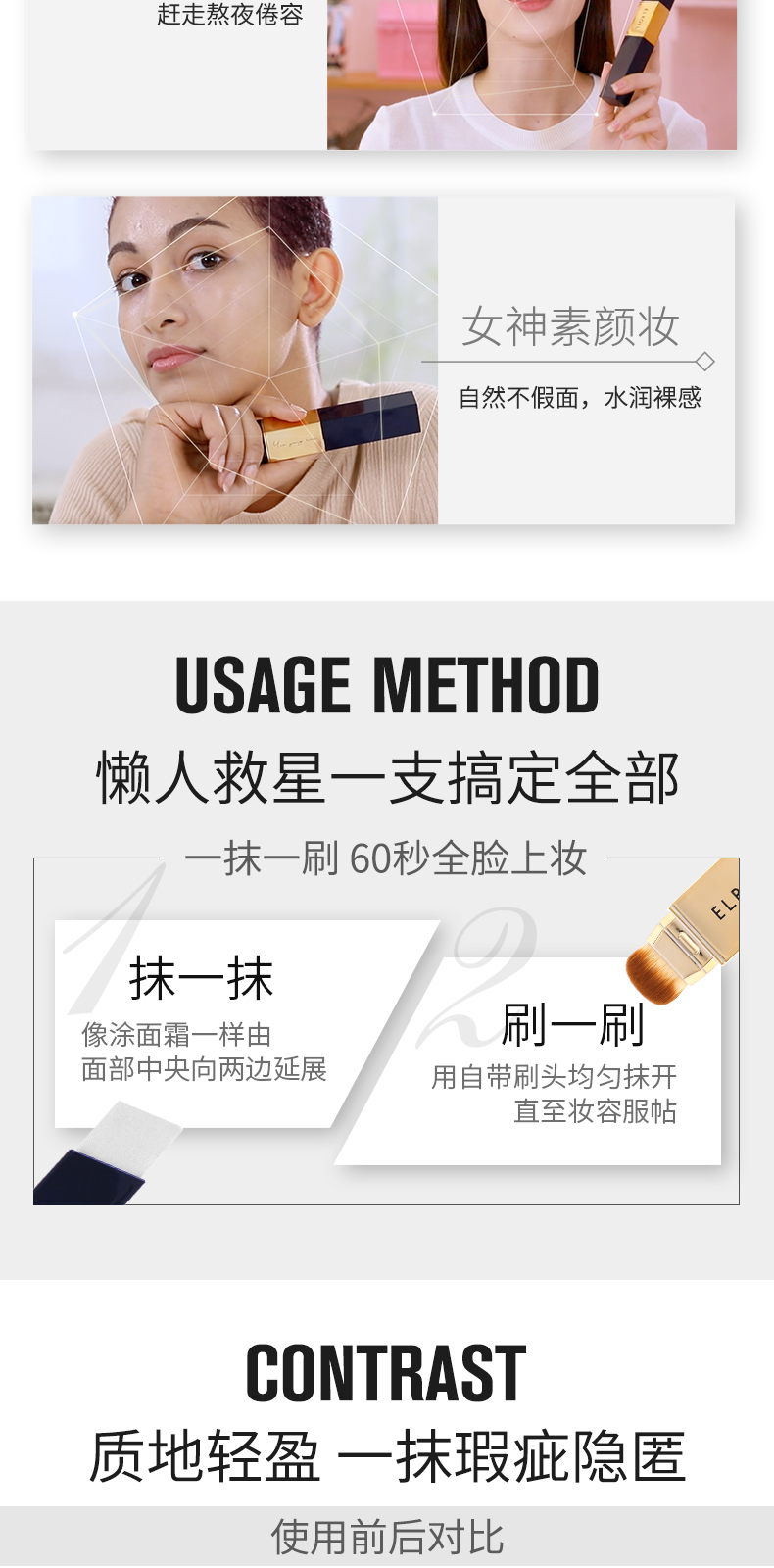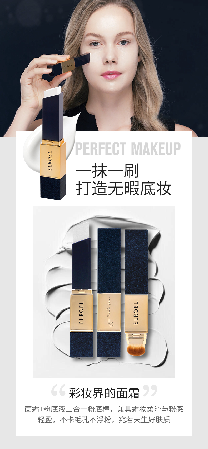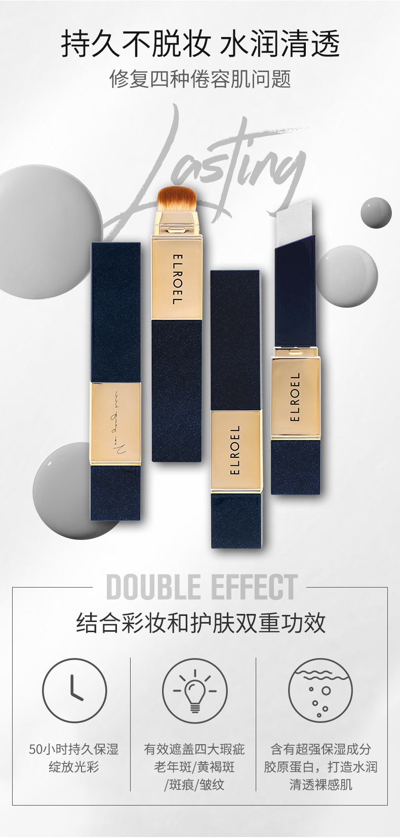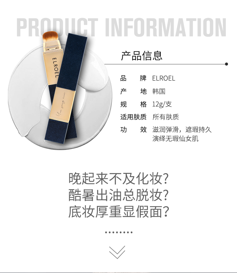 韩国ELROEL叶瑞叶白亮保湿遮瑕粉底棒12g