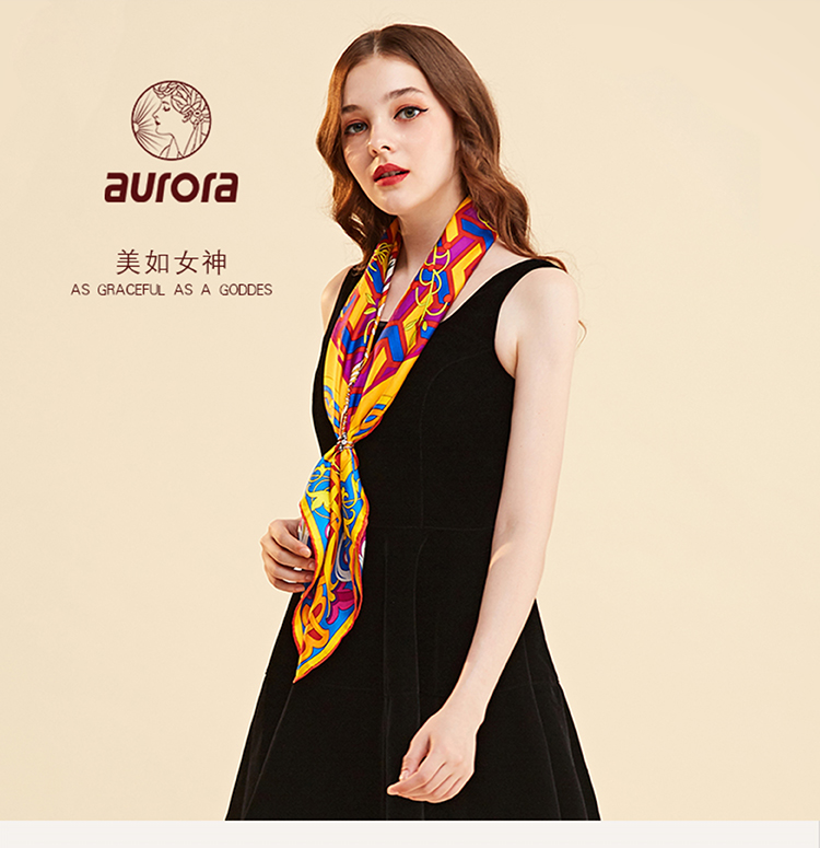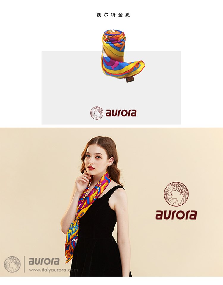 【七夕礼品】aurora奥罗拉 凯尔特金狐 真丝方巾 桑蚕丝丝绸 90*90cm 经典款 礼物