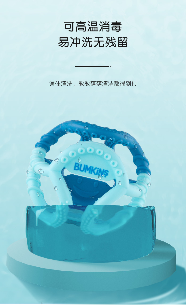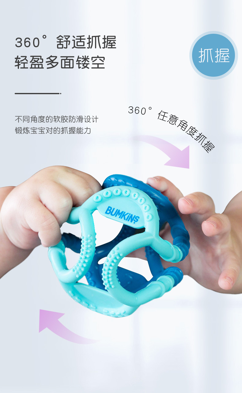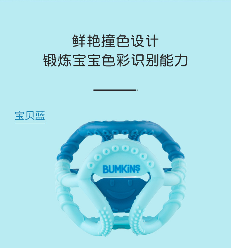 美国Bumkins磨牙棒婴儿牙胶宝宝玩具手抓球咬咬球 蓝色