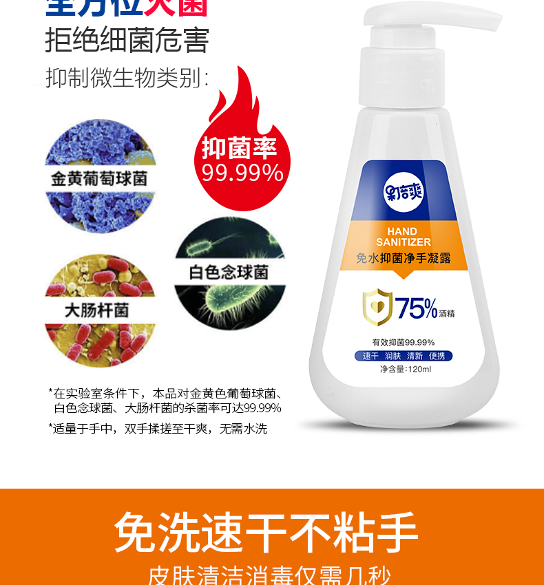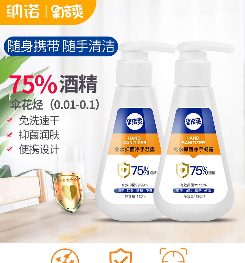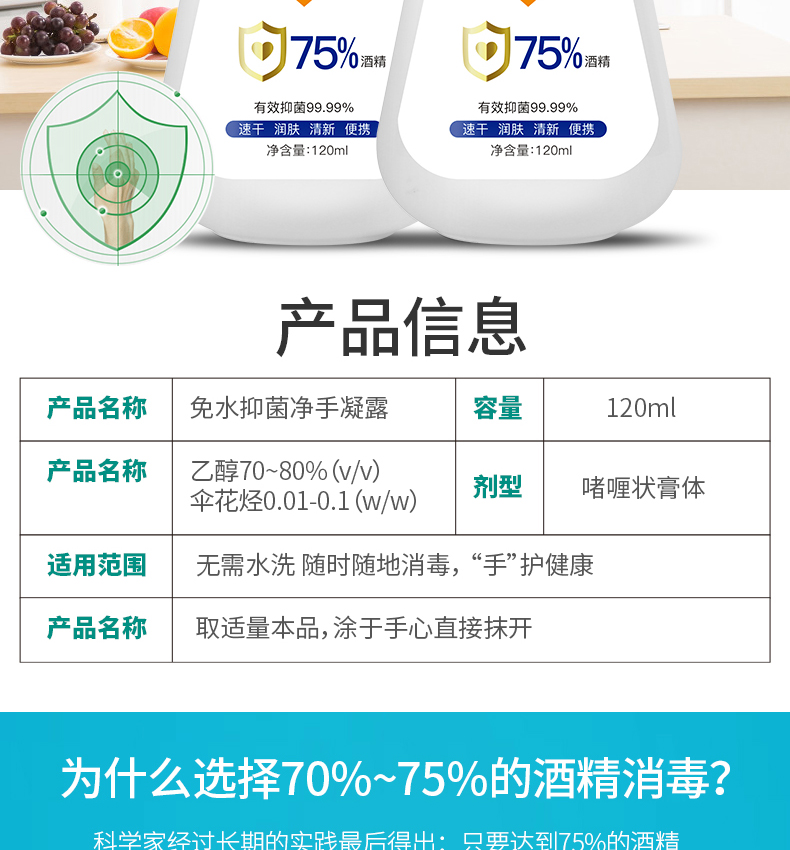 果倍爽75%酒精免水洗抑菌净手凝露120ML 免水洗手液免水洗手凝露75%酒精