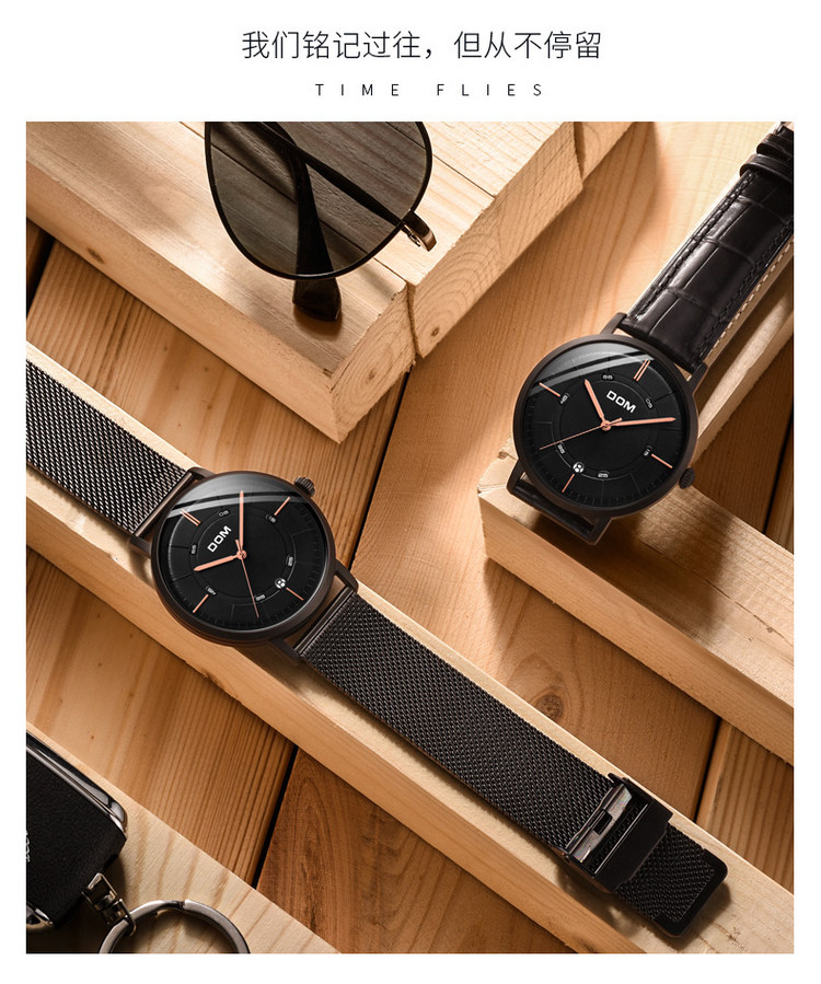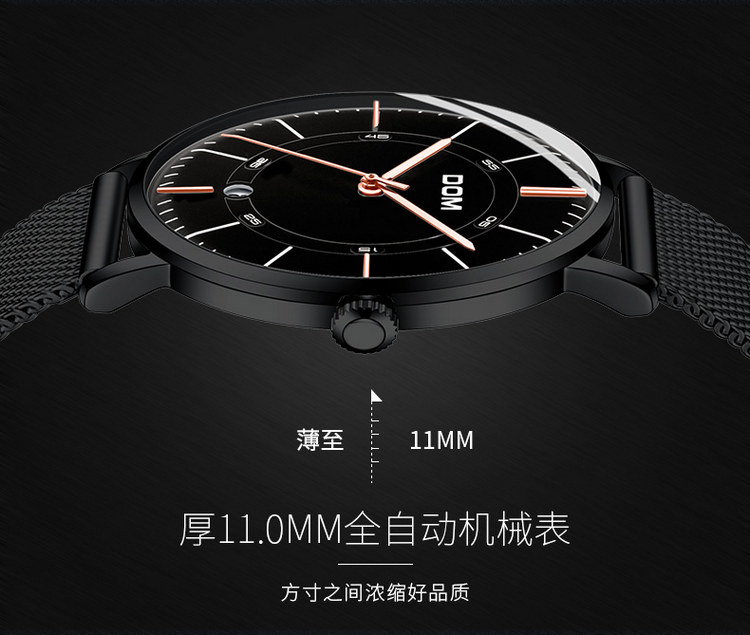 多姆(DOM)手表男全自动超薄镂空机械表M-8106BK-1M黑盘黑网带