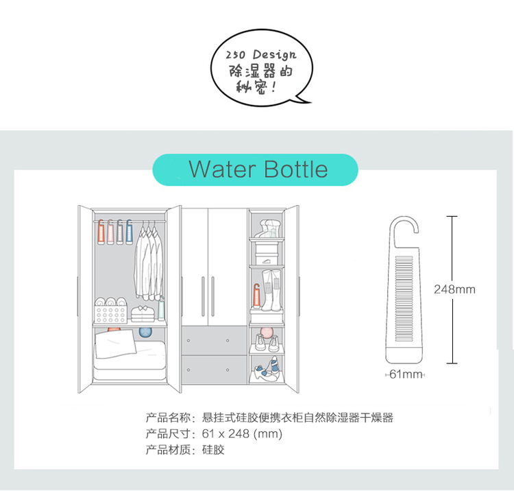 韩国原产250 Design悬挂式自然除湿器干燥器除潮器61 x 248 (mm) 灰色