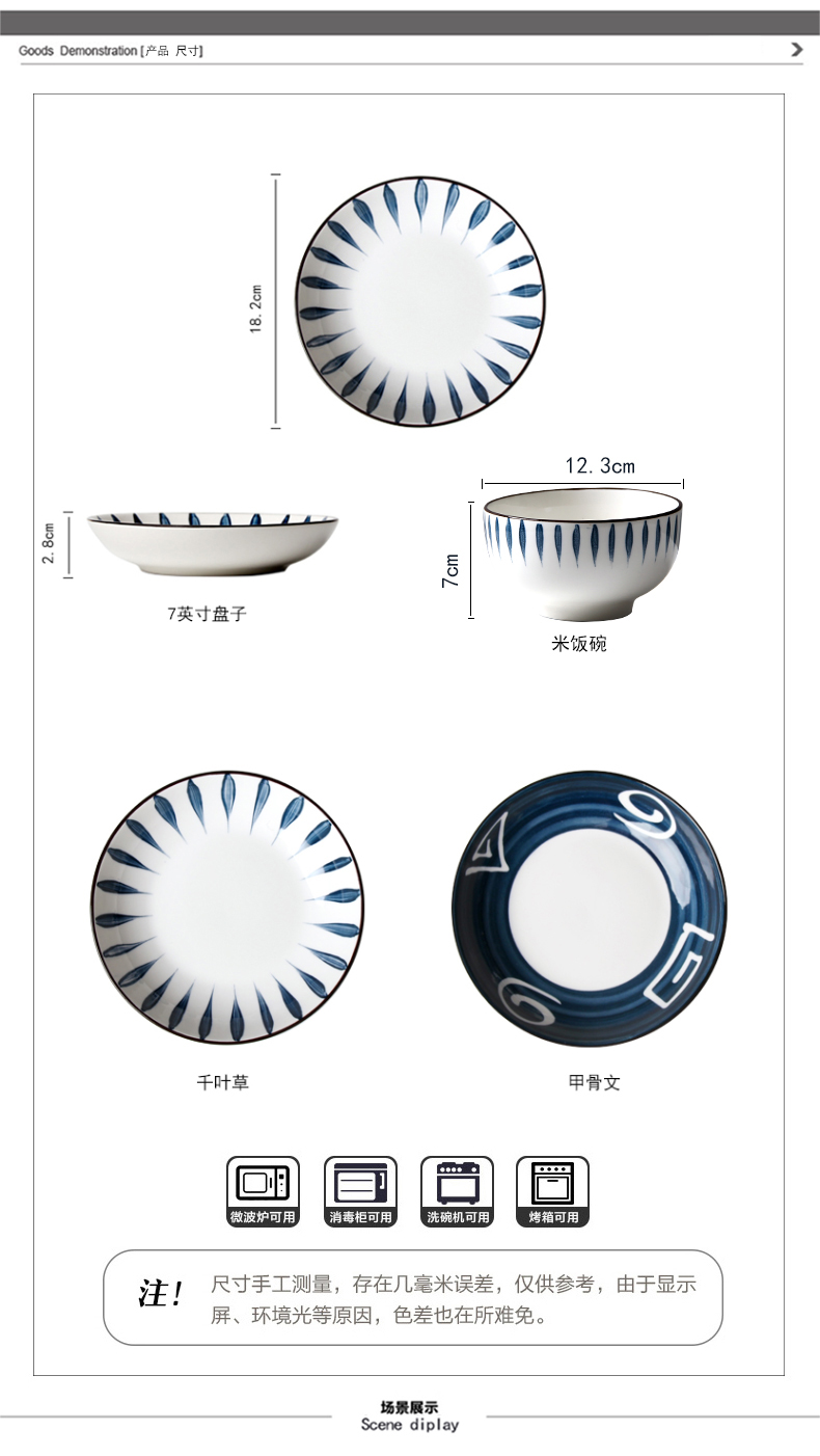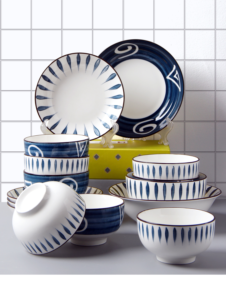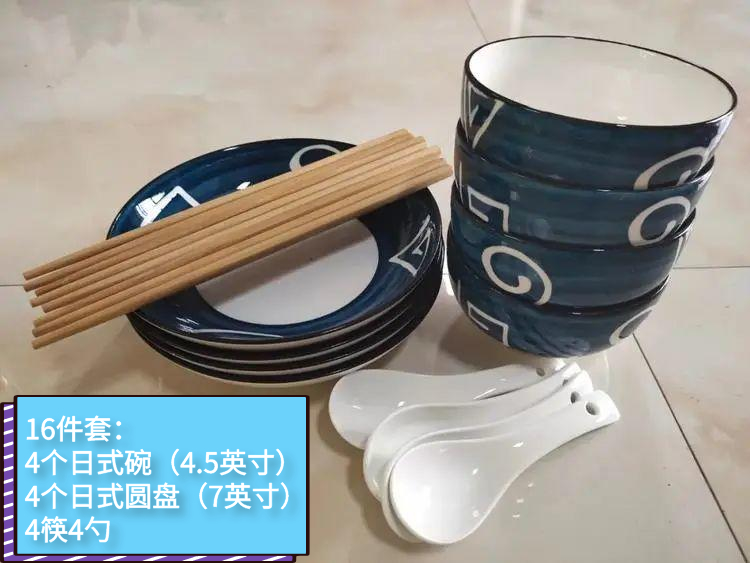 【网红同款】日式和风釉下彩16件套(4碗+4碟+4筷子+4勺子)餐具(甲骨文)