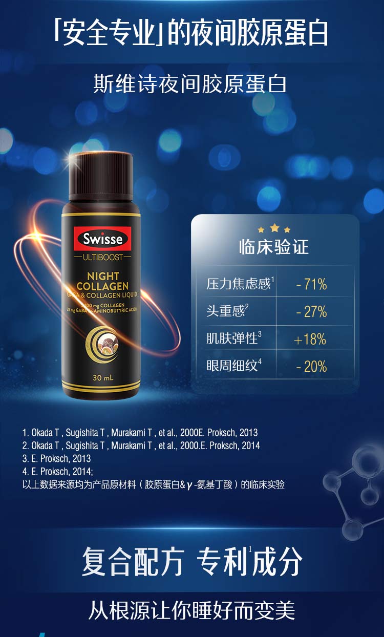 【一般贸易】Swisse 好梦小Q瓶 胶原蛋白舒压改善睡眠不含褪黑素 30ml*7