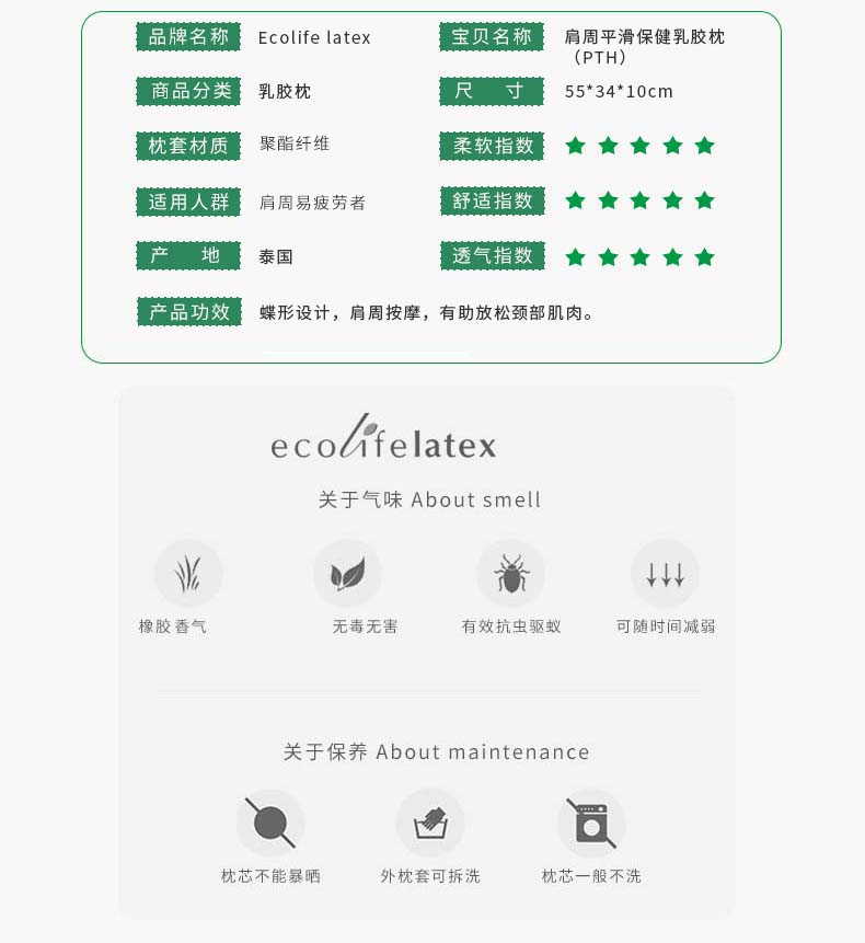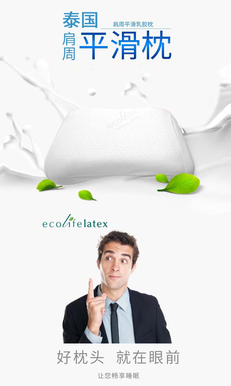 清仓特价泰国进口乳胶枕伊可莱ecolifelatex肩周平滑保健枕 头枕芯颈椎枕 PTH