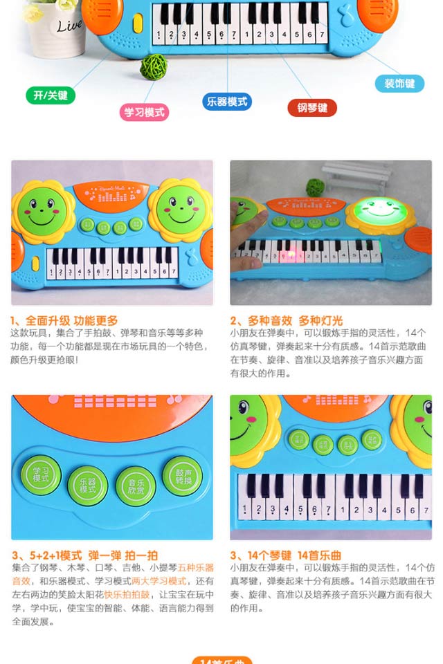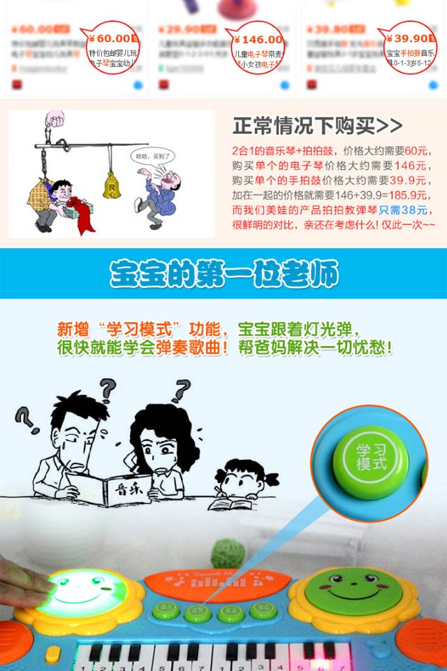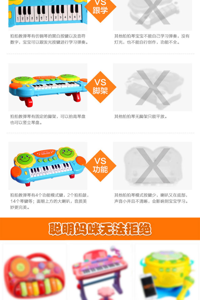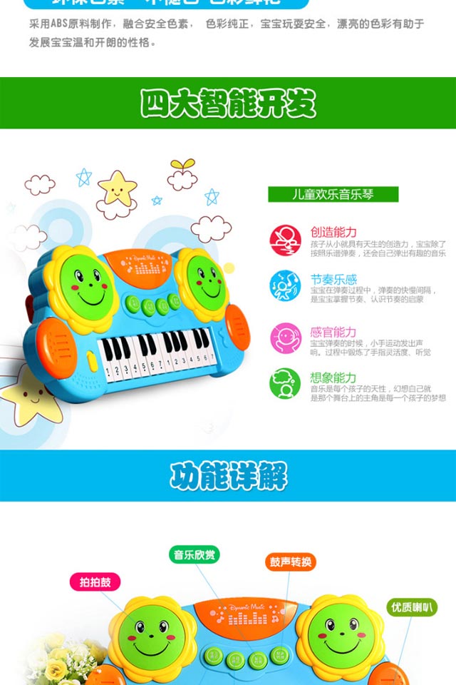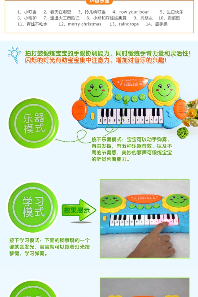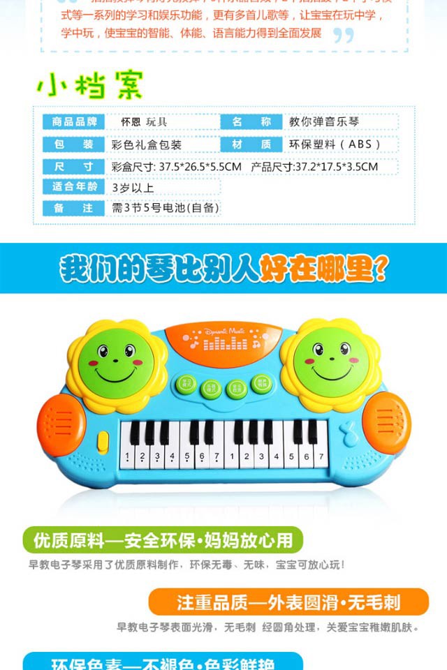 您所在的位置:首页 > 母婴用品  > 玩具 > 文教用品  > 怀恩 儿童电子琴音乐拍拍鼓早教益智钢琴 3003蓝色
