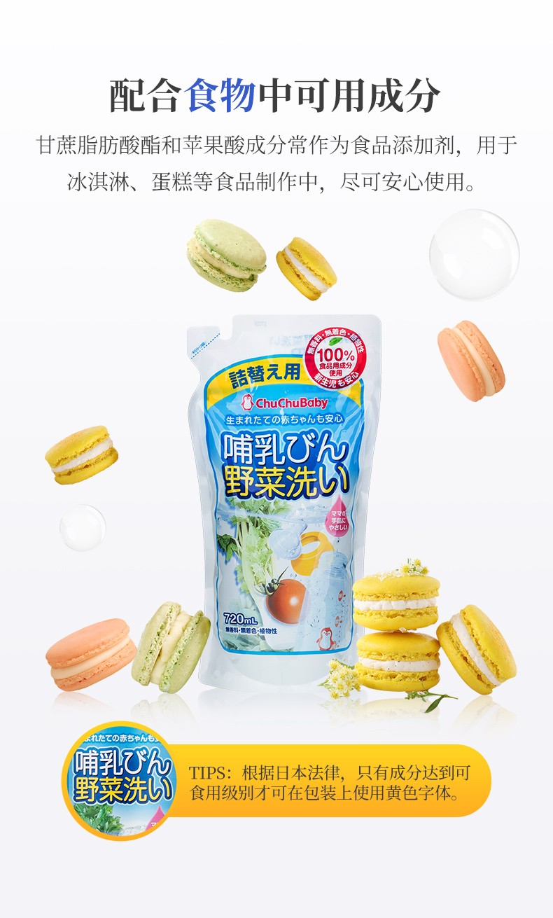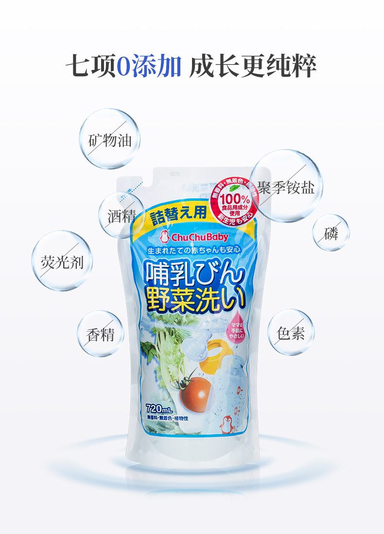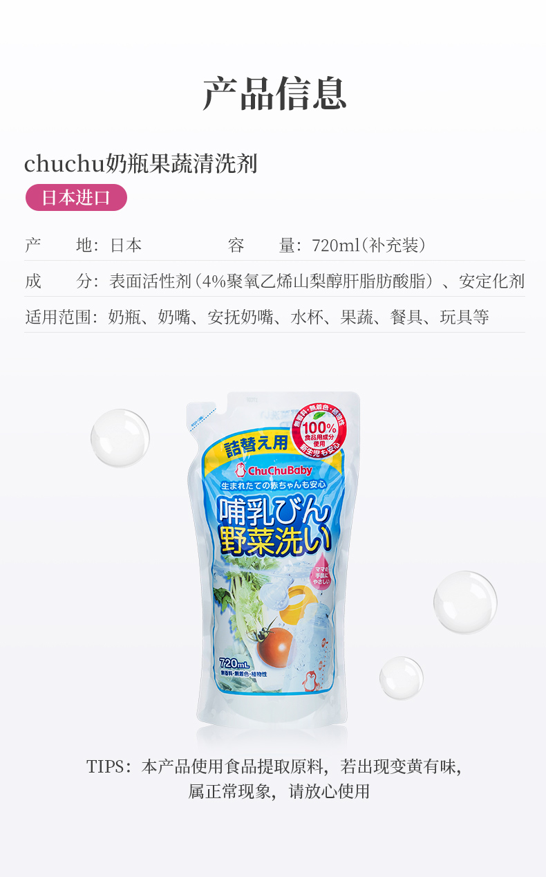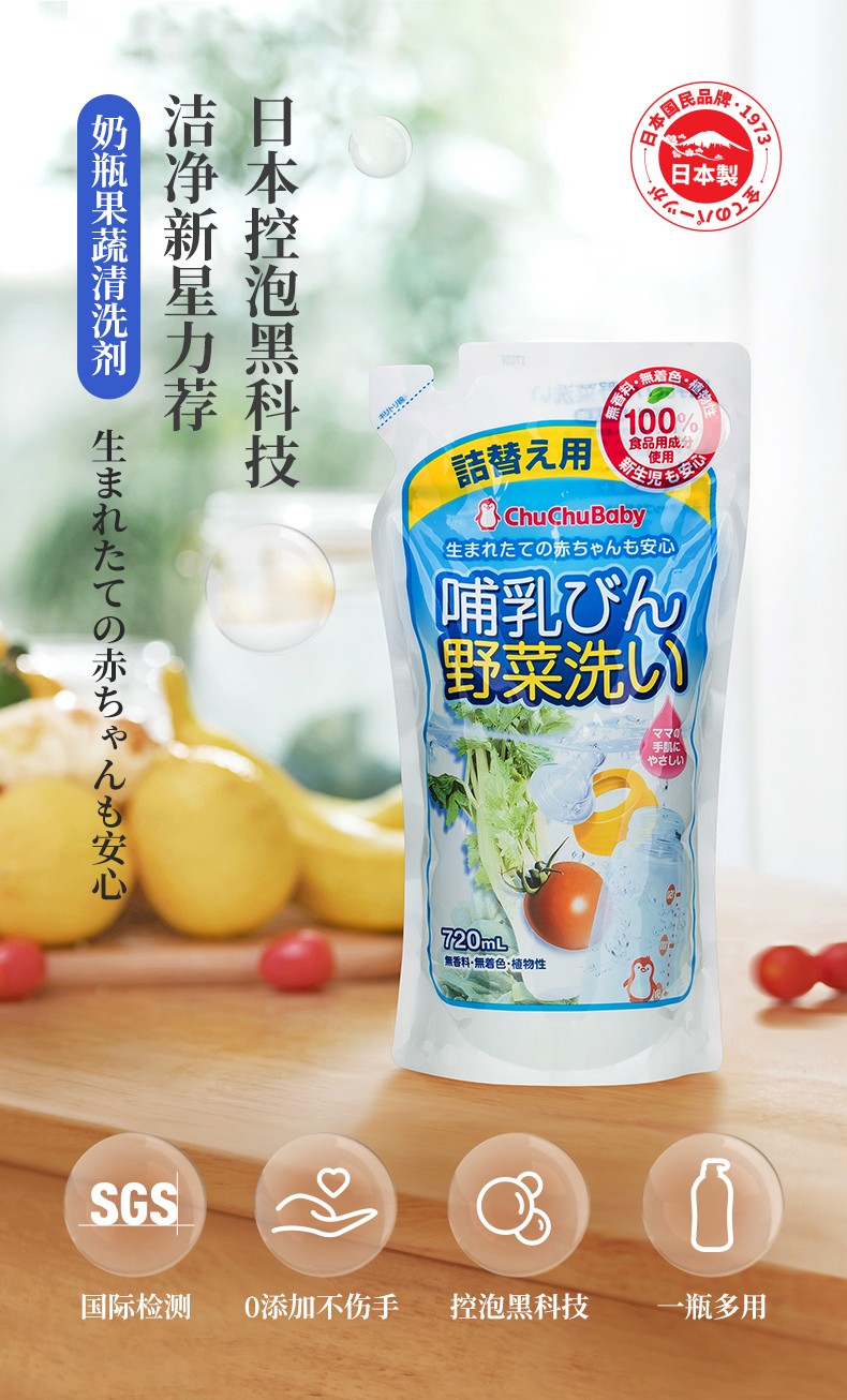 日本chuchu啾啾 奶瓶果蔬洗涤剂替换装 720ml