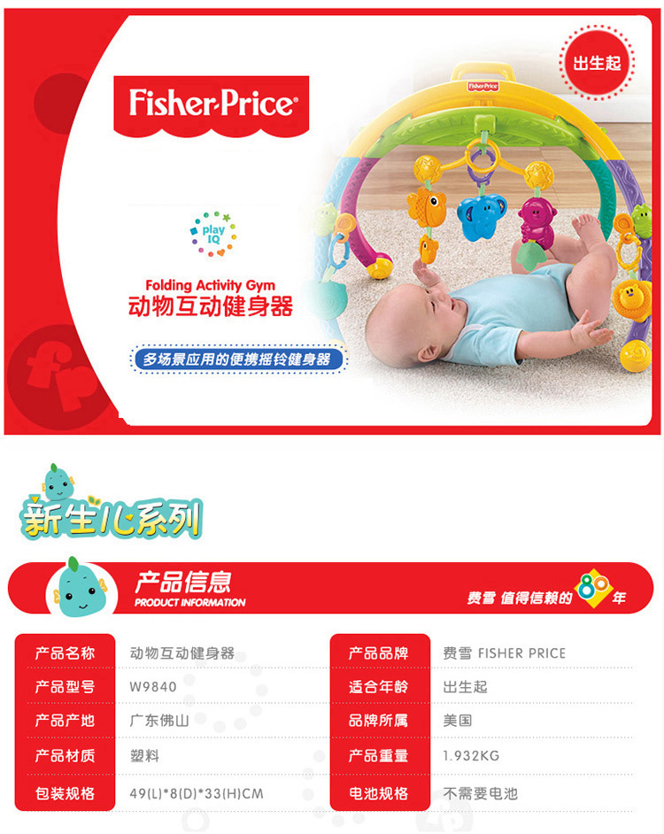 费雪(Fisher-Price) 动物互动健身架 W9840