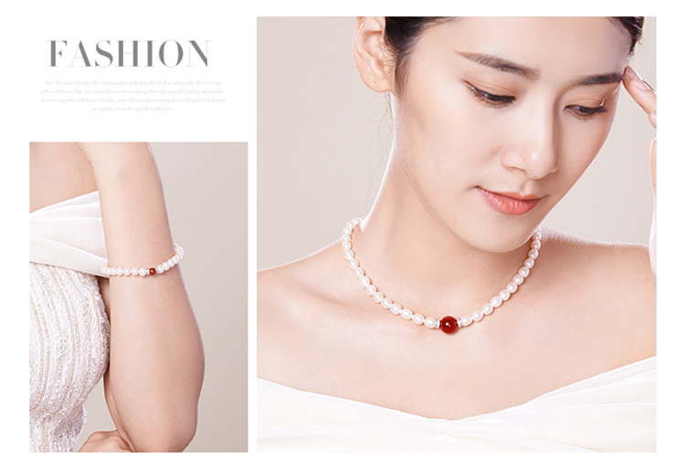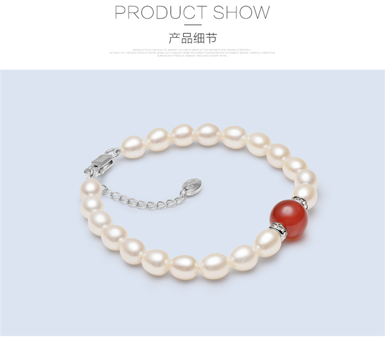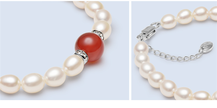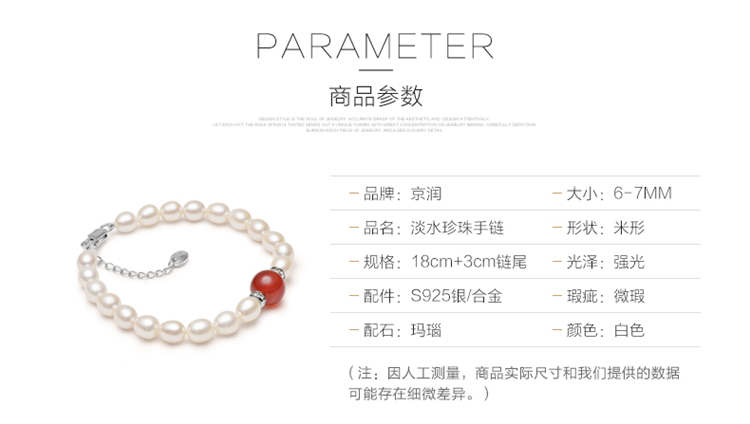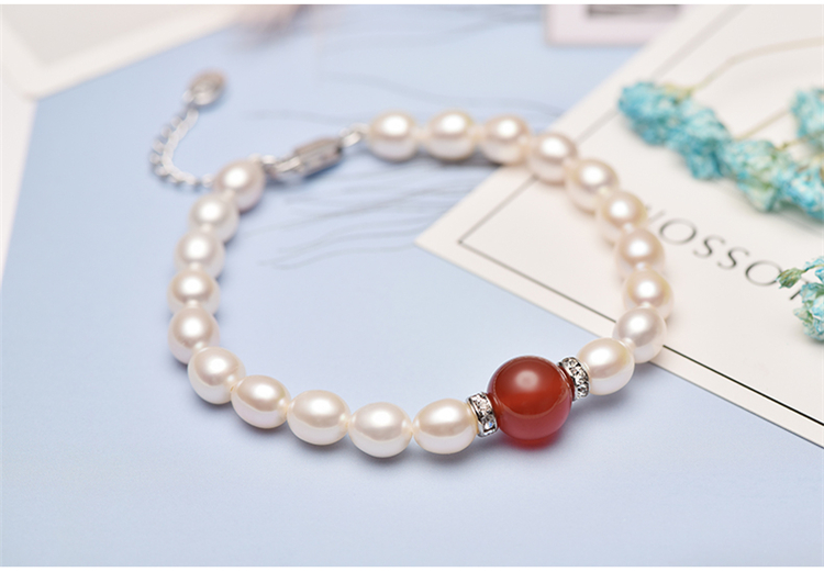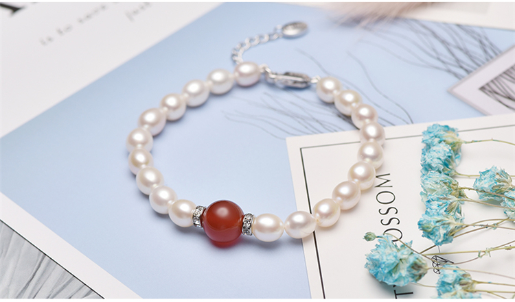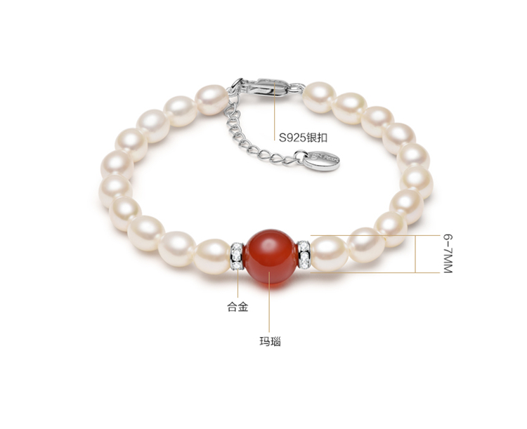 京润珍珠 赐福 6-7mm圆形 白色淡水珍珠玛瑙手链 七夕送女友婆婆