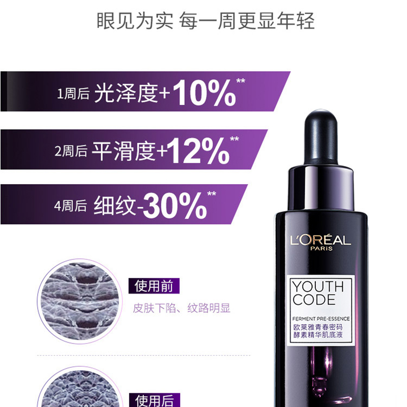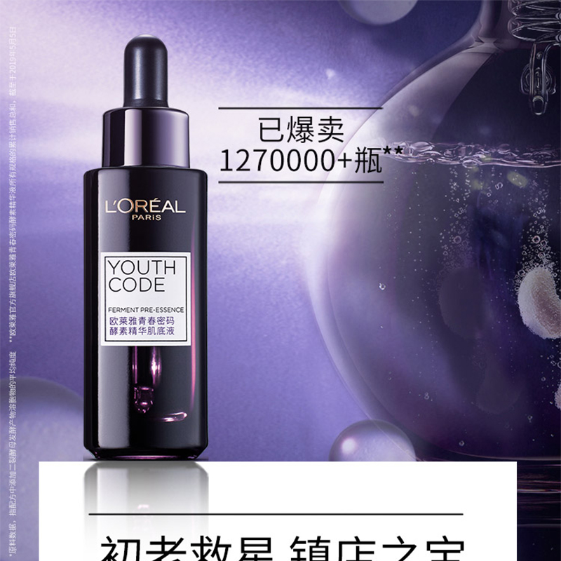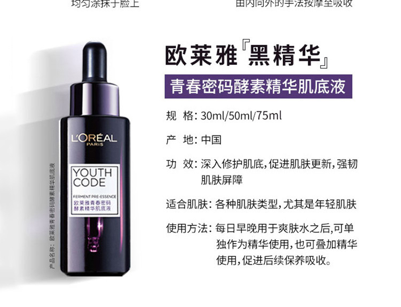 法国巴黎欧莱雅黑精华青春密码酵素面部精华液女肌底液75ml