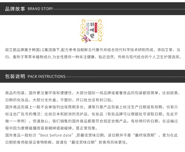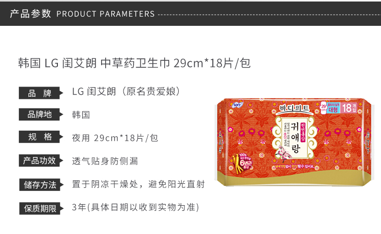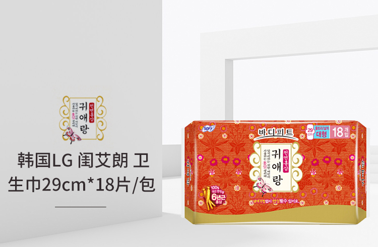 韩国贵爱娘中草药无荧光剂红参卫生巾 29cm18片