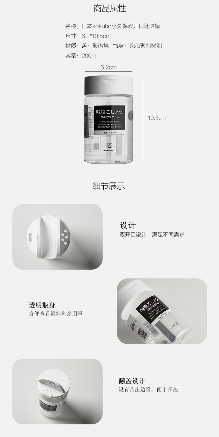 日本原产KOKUBO小久保双开口调味罐调料瓶30g