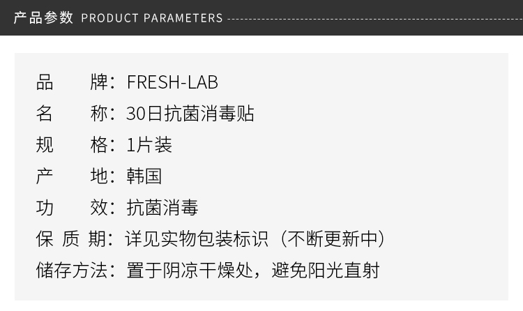 【韩国直邮】FRESH-LAB 30日消毒贴