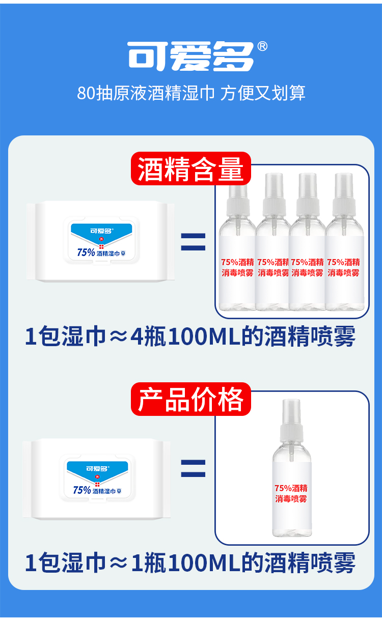 可爱多 75%酒精80片婴儿湿巾 盖装 80片/包