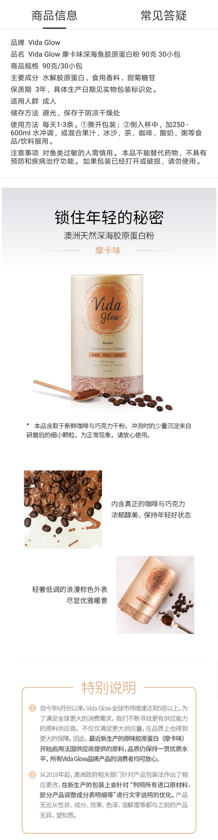 澳洲 Vida Glow摩卡味深海鱼油胶原蛋白粉(90克 30小包)