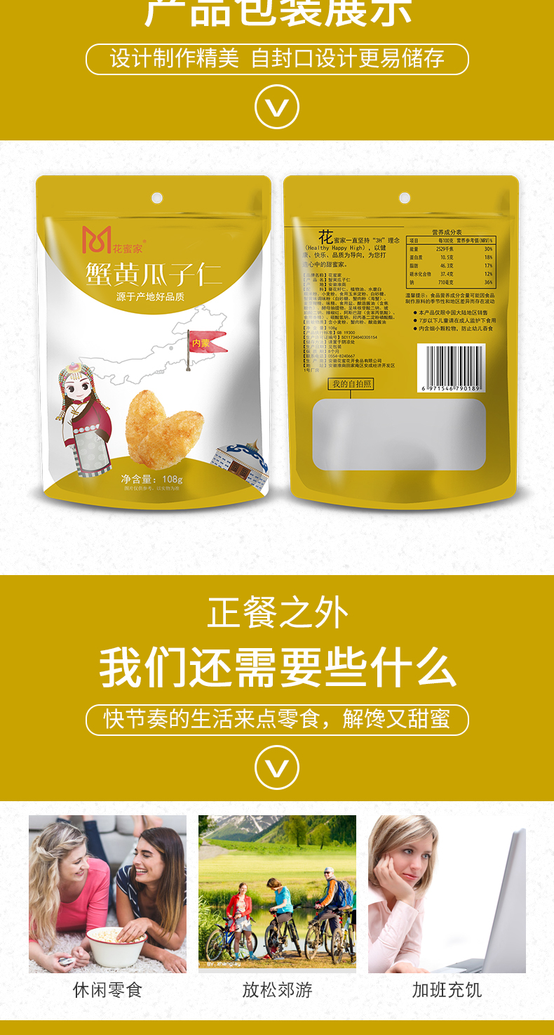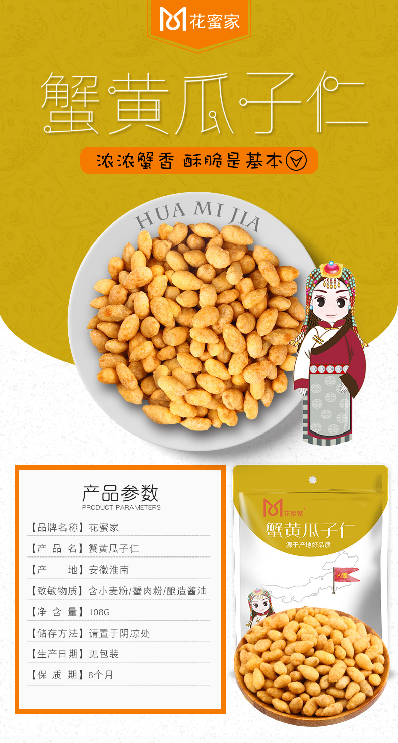 花蜜家蟹黄瓜子仁 香酥葵花籽仁浓郁果香办公室休闲零食 108g