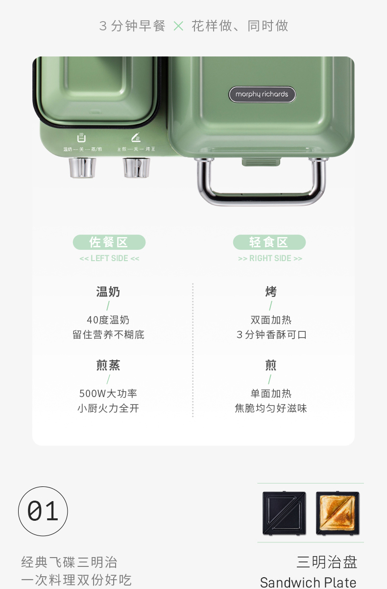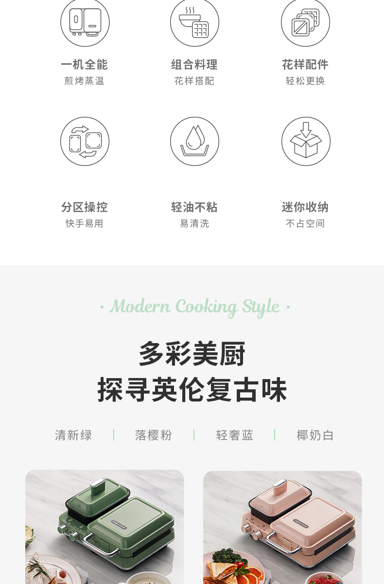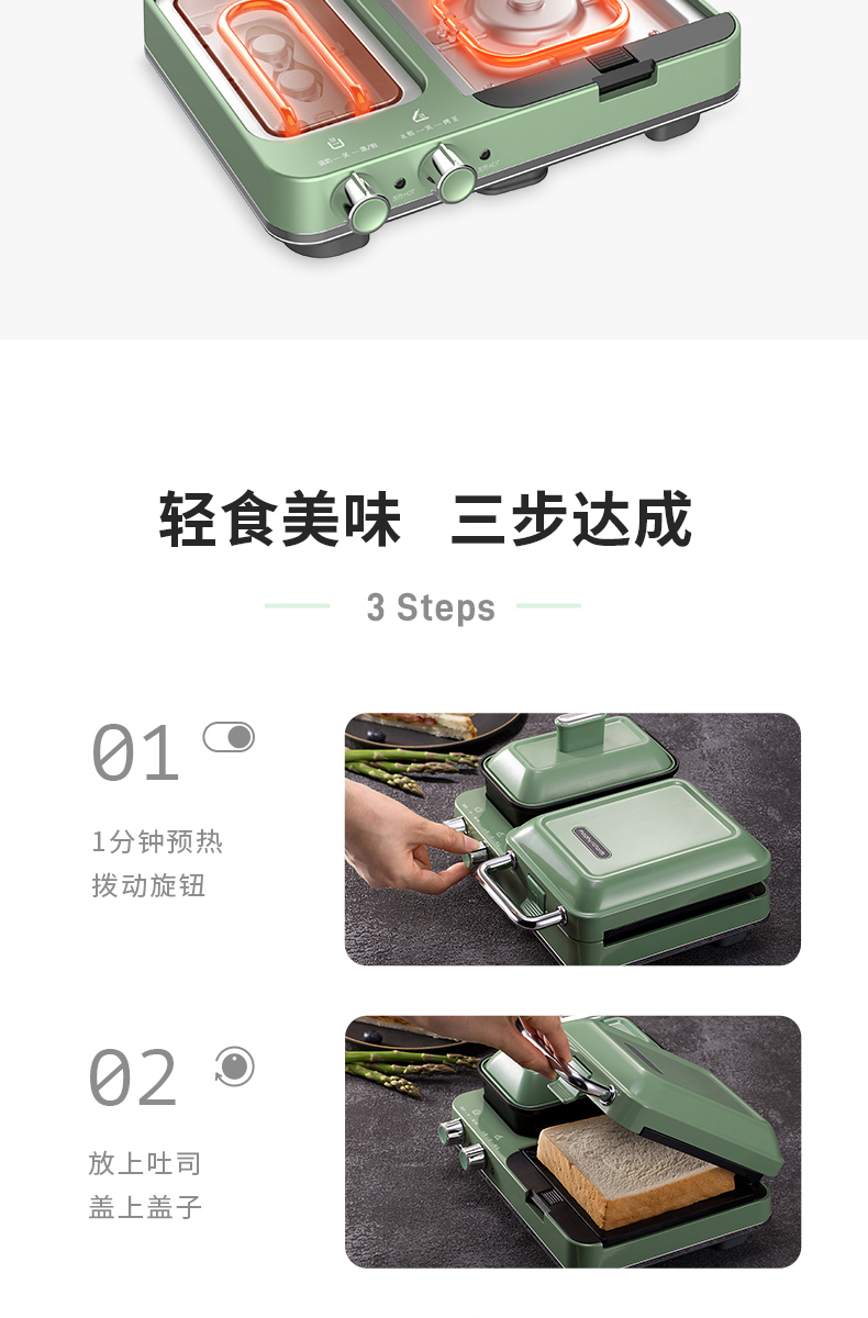 摩飞多功能轻食机MR9086标配绿