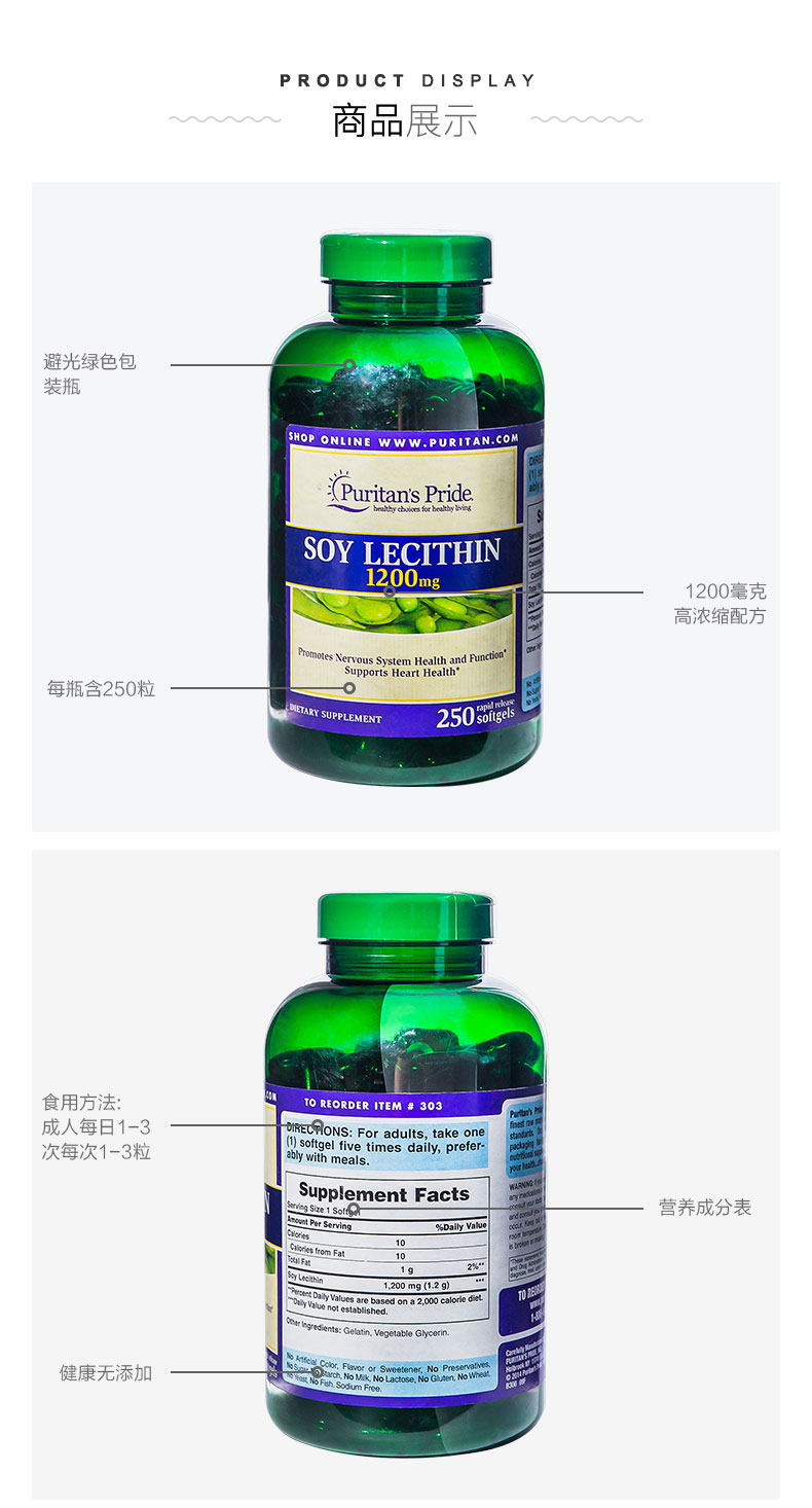 【心血管健康】Puritan's Pride 普丽普莱 大豆卵磷脂软胶囊 250粒/瓶