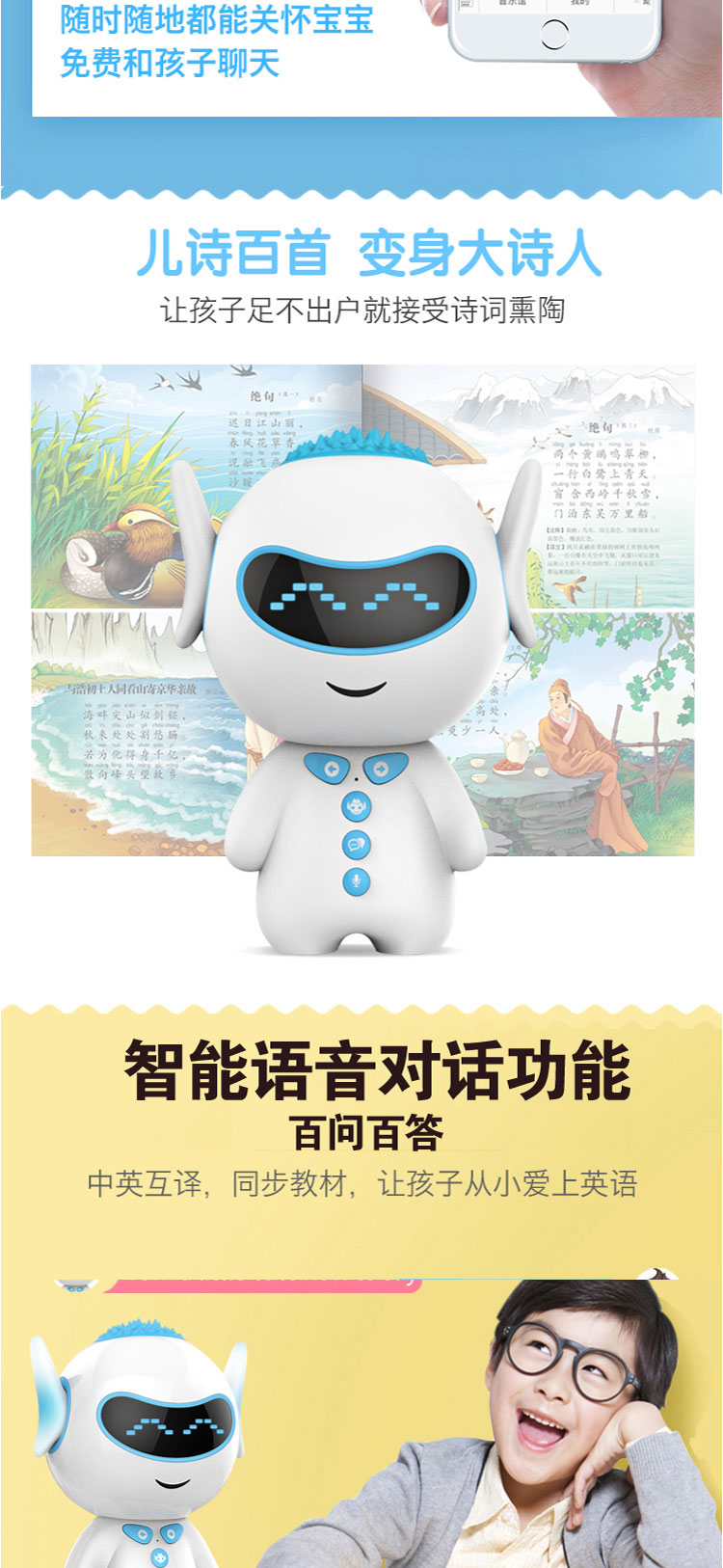 PDQ智能陪伴机器人故事机学习语音对话儿童玩具胡巴款式混发(赠品)