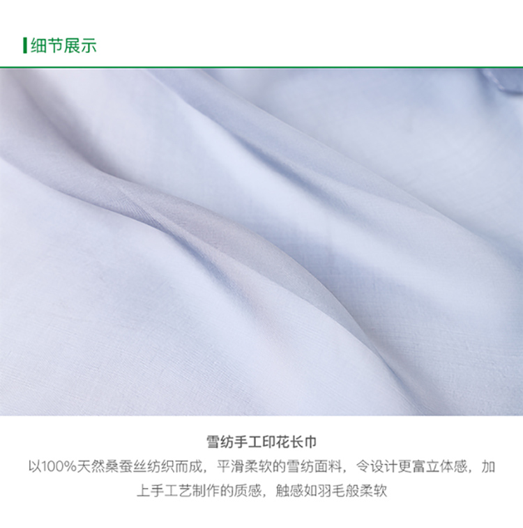 您所在的位置:首页 > 服饰内衣  > 服饰配件 > 女士丝巾/围巾/披肩  > 沐泠自由 100%天然桑蚕丝雪纺手工印花长巾 ML-90460834