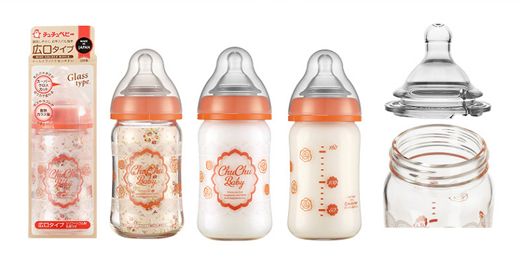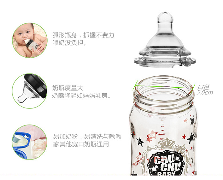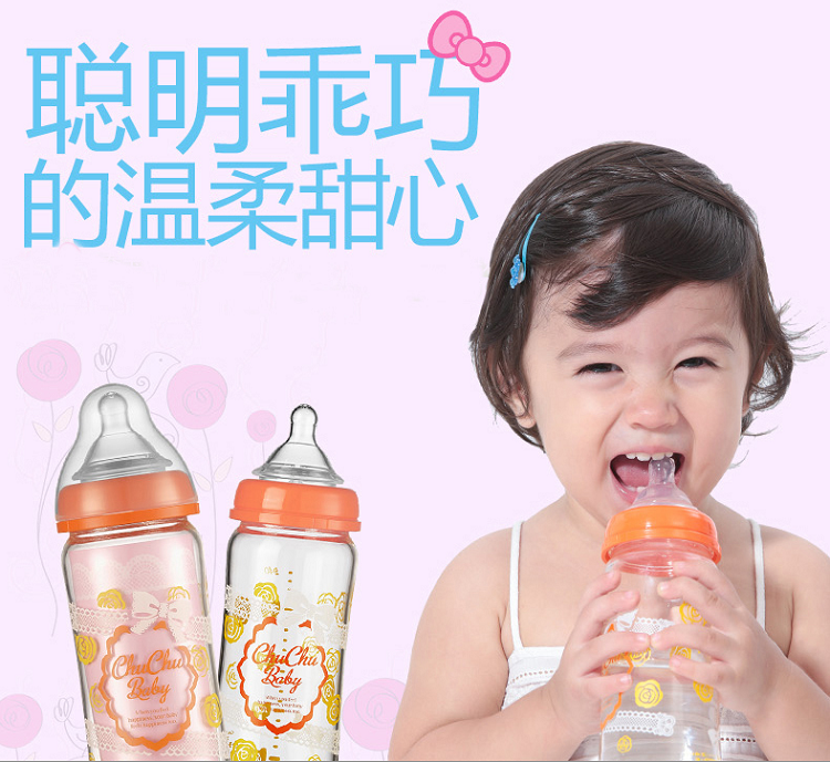 啾啾160ml蕾丝可爱妈妈玻璃宽口奶瓶(清仓)
