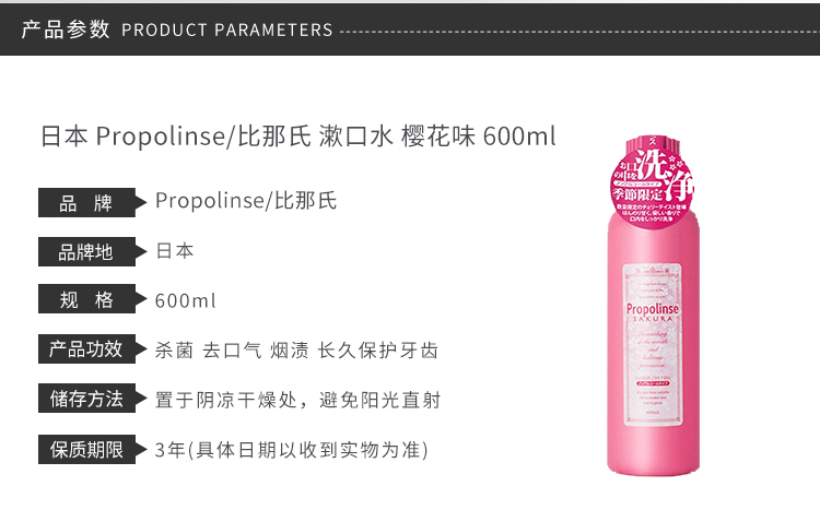 您所在的位置:首页 > 个人护理  > 口腔护理 > 漱口水  > 日本Propolinse比那氏粉色樱花漱口水 600ml