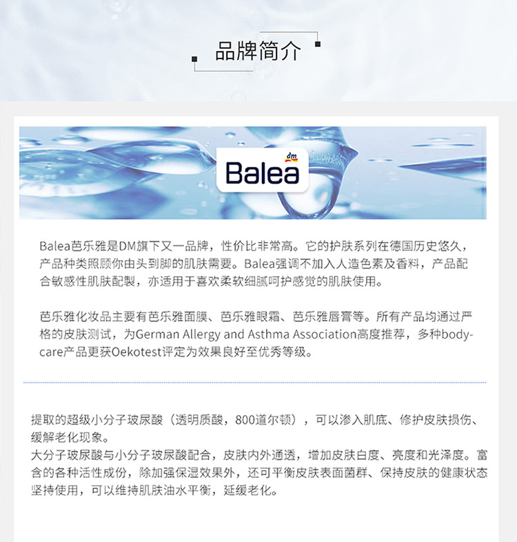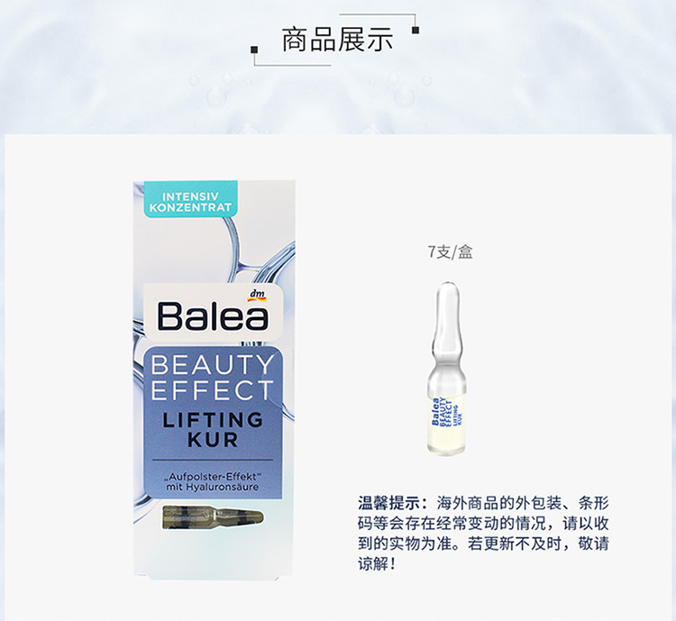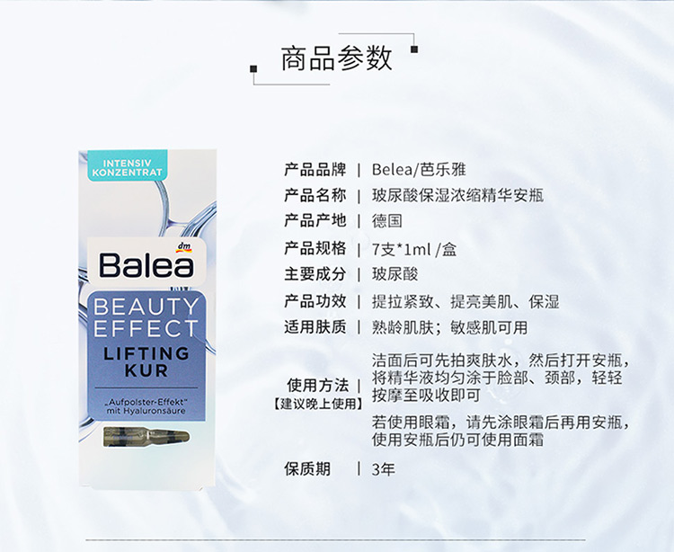 【荷兰直邮】Balea芭乐雅德国进口玻尿酸浓缩精华原液安瓶补水保湿紧致 1ml*7