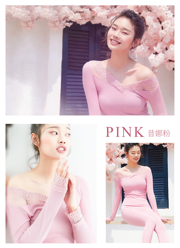 梦芙妮MISSSHEENA昔娜小姐美体衣套装修身收腹保暖秋衣秋裤蕾丝衣蓝