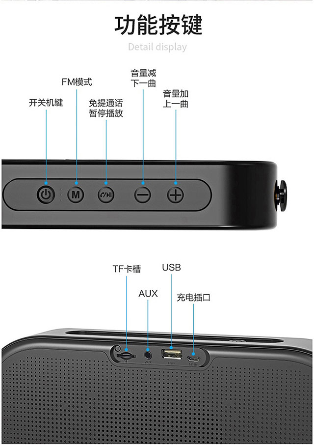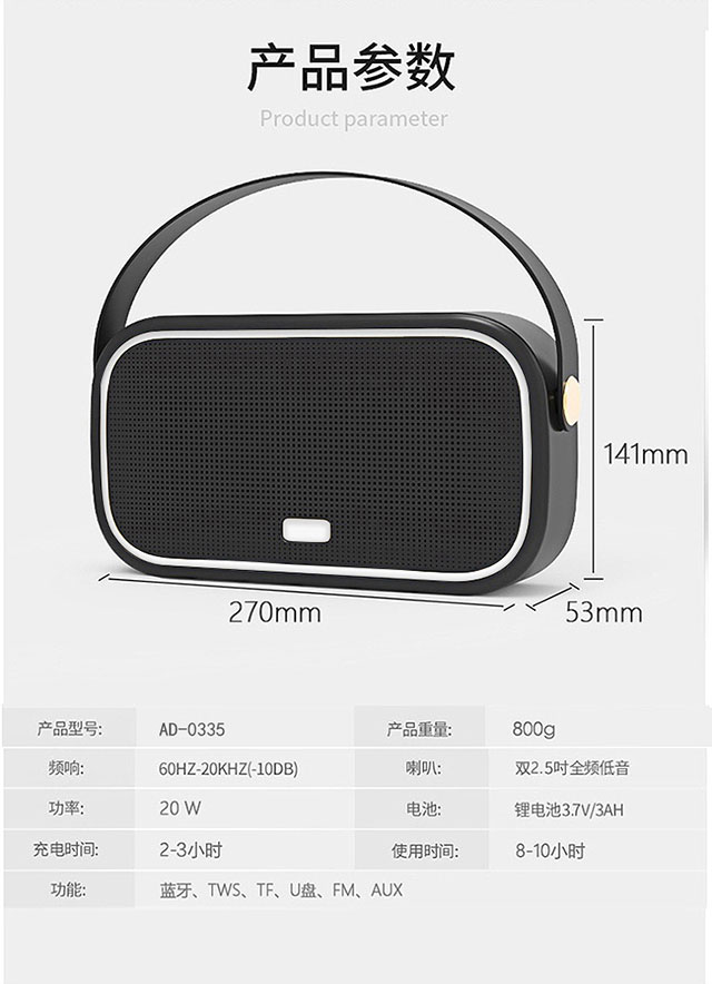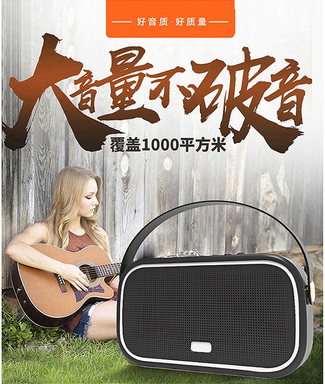 中国 颐电 手提便携式蓝牙音箱户外重低音炮 AD-0335 黑色