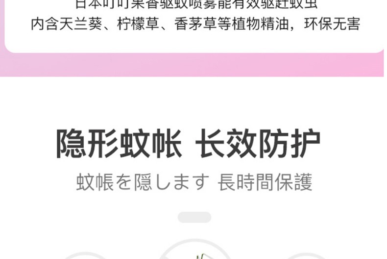 您所在的位置:首页 > 家庭清洁  > 驱蚊驱虫 > 驱蚊用品  > 日本叮叮防虫驱蚊喷雾200ml/支【蓝色】