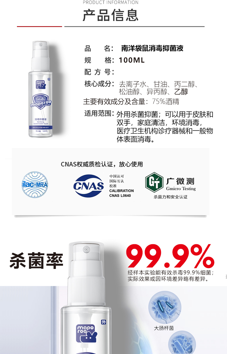 【清仓特价】南洋袋鼠 免洗洗手液家用抑菌消毒液室内喷雾消毒液100ml
