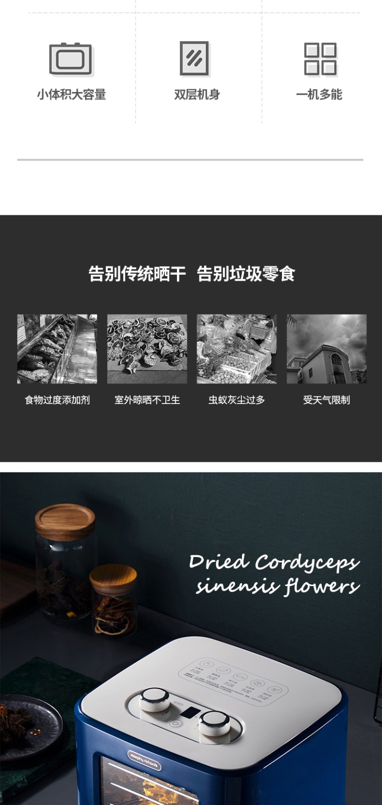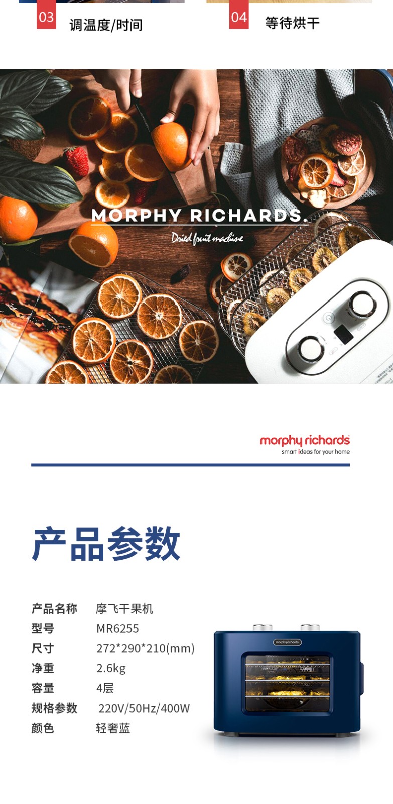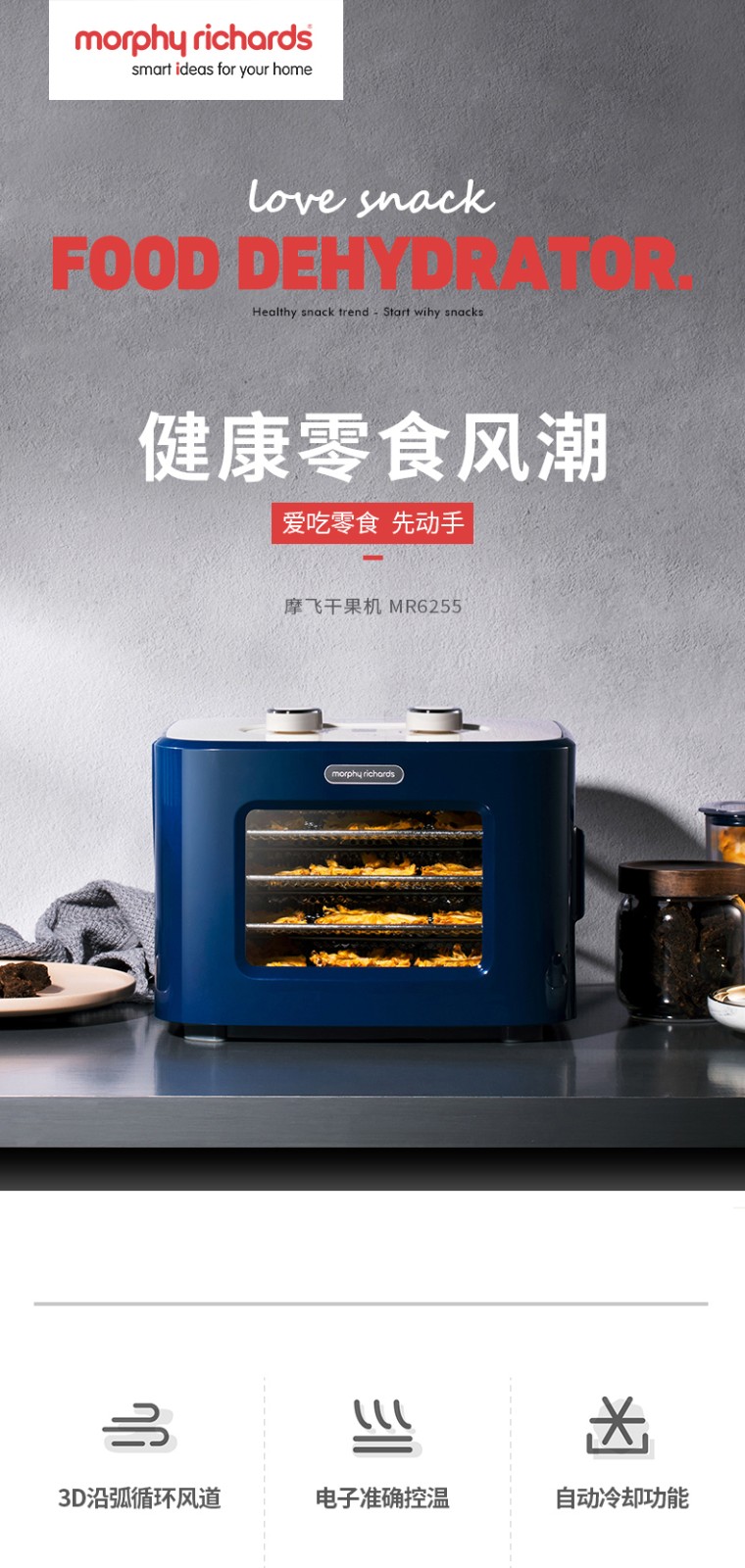 英国摩飞干果机小型水果蔬烘干机家用宠物零食品肉干风干机MR6255