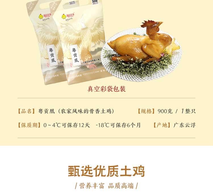 温氏佳味 骨香老鸡粤贡凰 900g/只