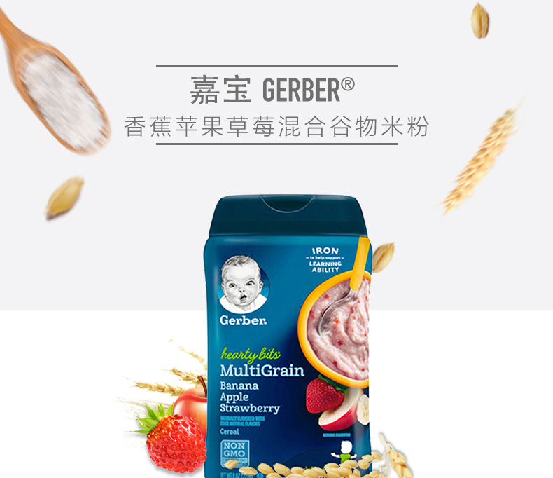 美国Gerber嘉宝四段苹果香蕉草莓米粉227g
