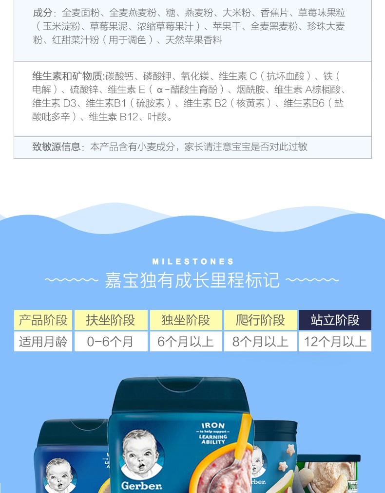 您所在的位置:首页 > 母婴用品  > 营养辅食 > 米粉/菜粉  > 美国Gerber嘉宝四段苹果香蕉草莓米粉227g