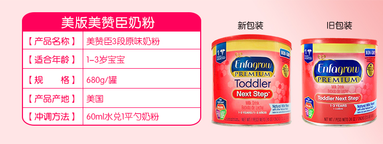 您所在的位置:首页 > 母婴用品  > 奶粉 > 婴幼奶粉  > 【年货】【美国直邮】美版 Enfamil美赞臣金樽3段婴幼儿奶粉 680g 原味(1-3岁)