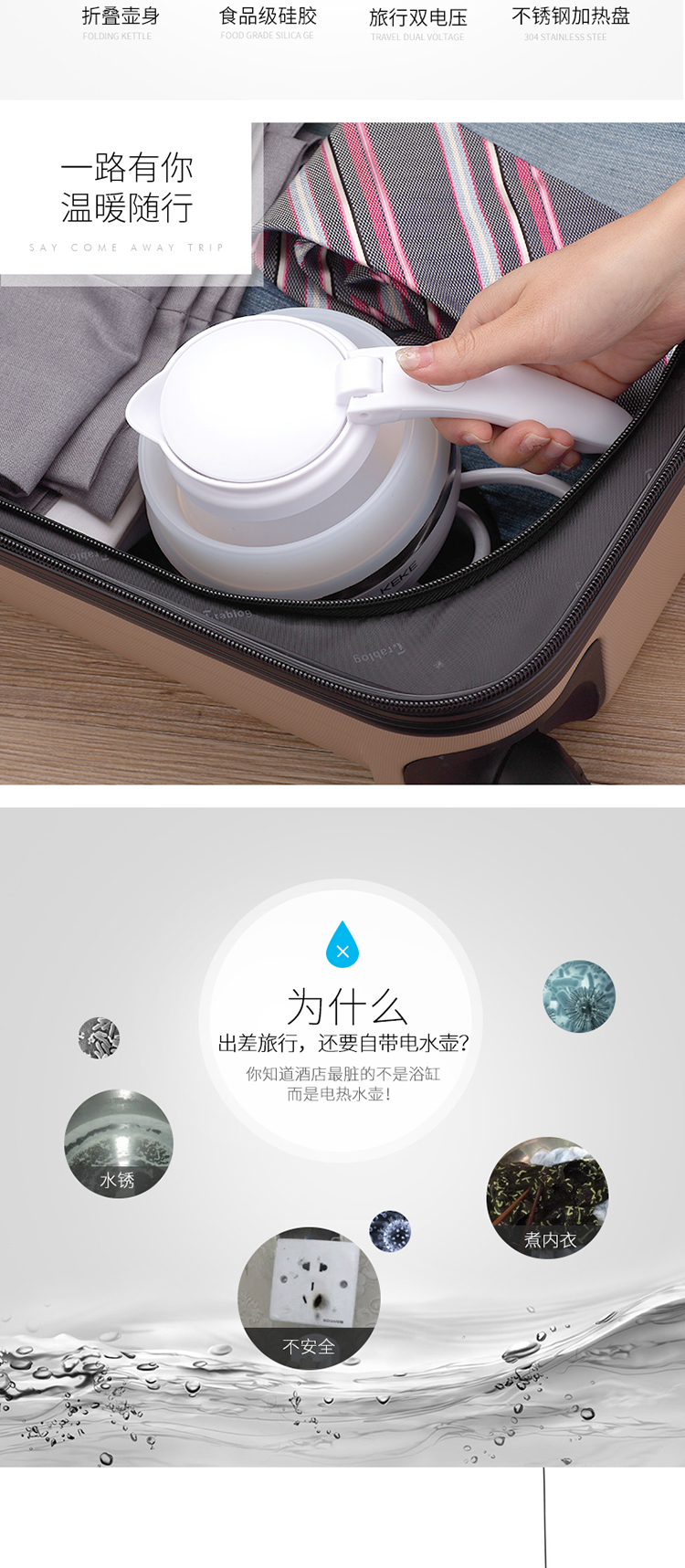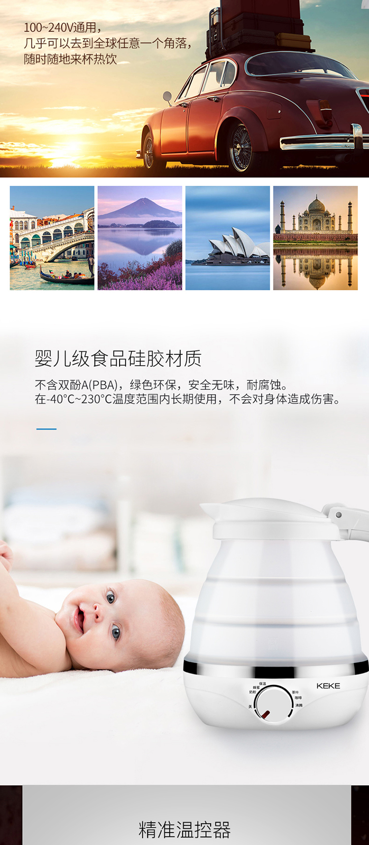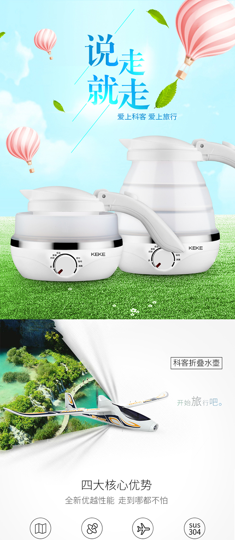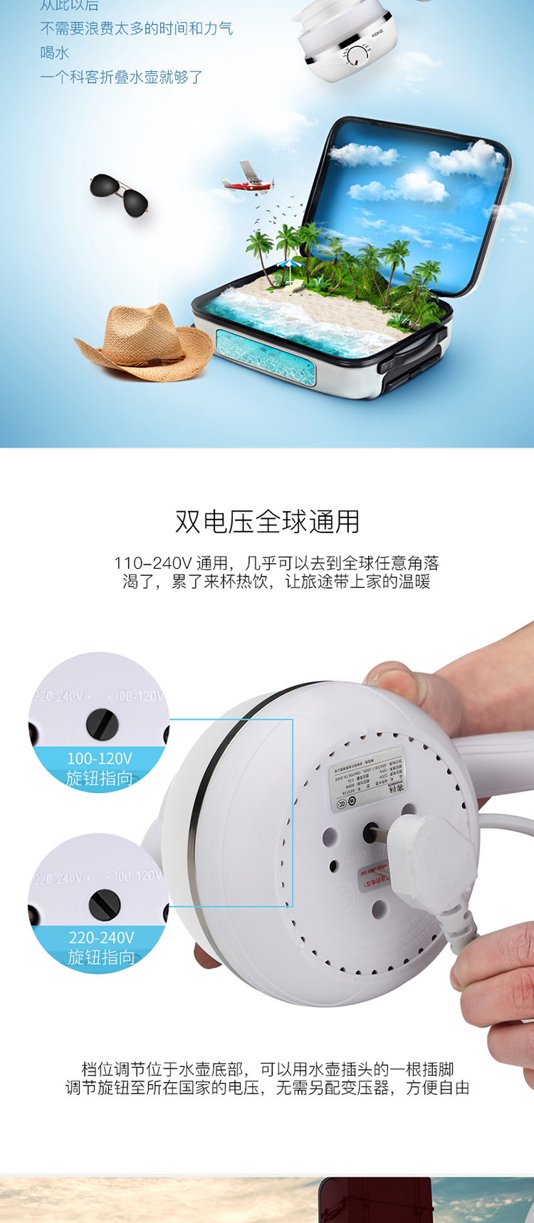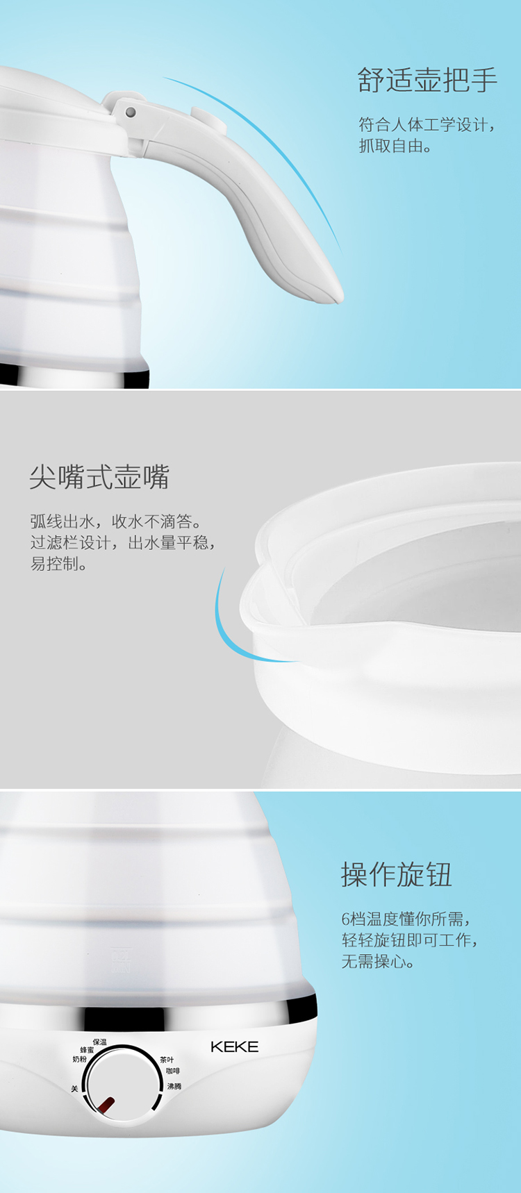 KEKE科客-可折叠便携式双电压电热水壶(蓝)