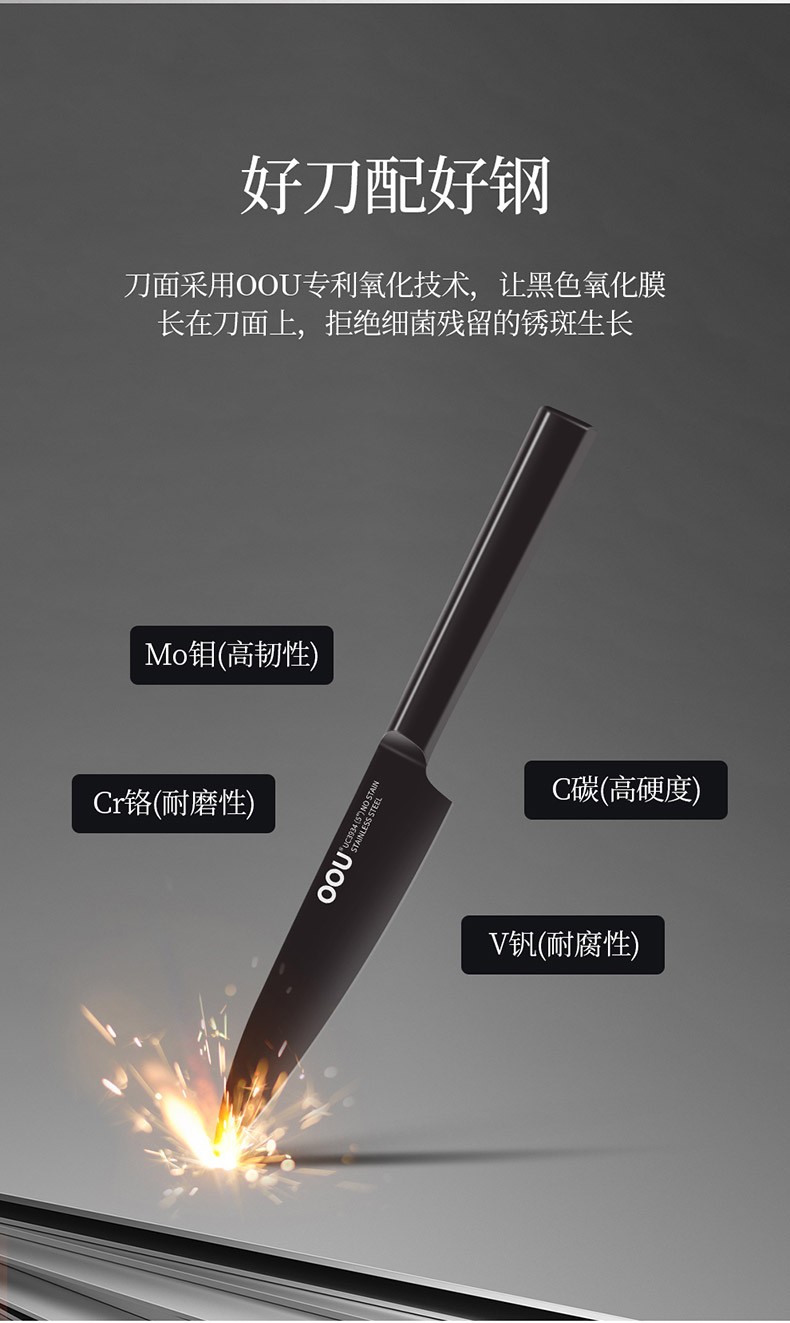 您所在的位置:首页 > 家居日用  > 烹饪锅具 > 锅具配件  > 【授权商品】OOU不锈钢黑刃水果刀