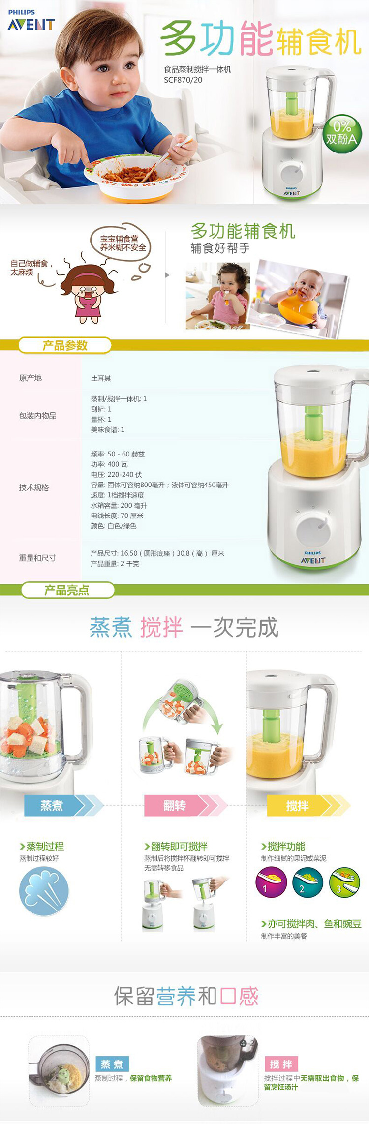 飞利浦新安怡食品热蒸搅拌一体机SCF870/20